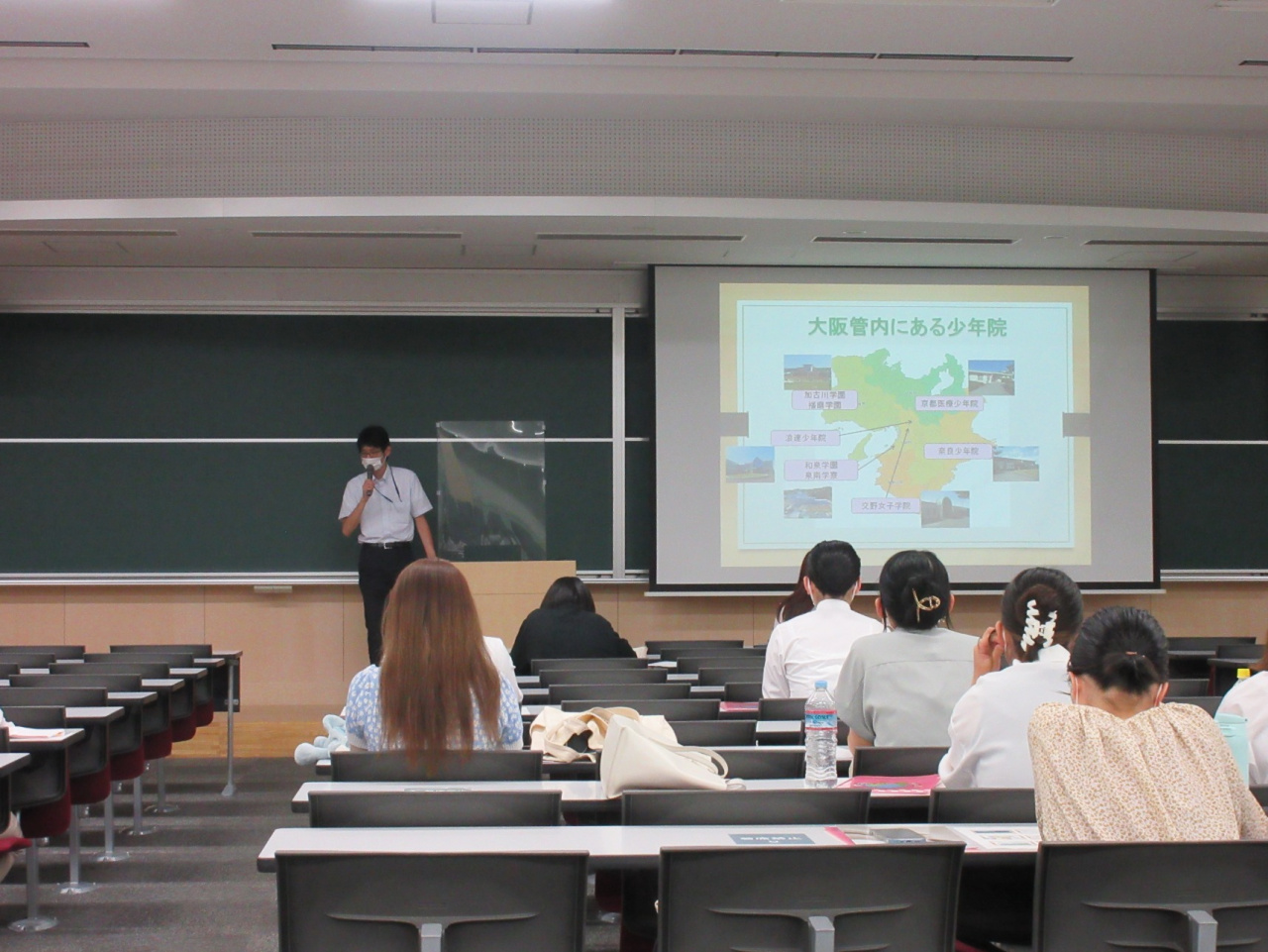 矯正・保護課程では、受講生のキャリア形成を視野に入れ、講義と施設参観を組み合わせた実践的かつ体系的な教育プログラムを展開しています。今年度も新型コロナウイルスの影響により、施設参観を再開している近畿圏内の矯正・保護施設が少ないことから、法務省大阪矯正管区にご協力いただき、昨年度に続き、学内プログラムも実施することとしました。