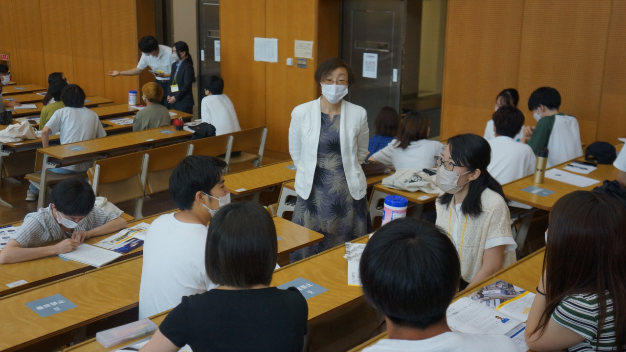 経済学部の専攻科目「中小企業論」(担当:辻田素子教授)では7月11日、京都市内の中小企業18社と受講生との交流会を開催しました。