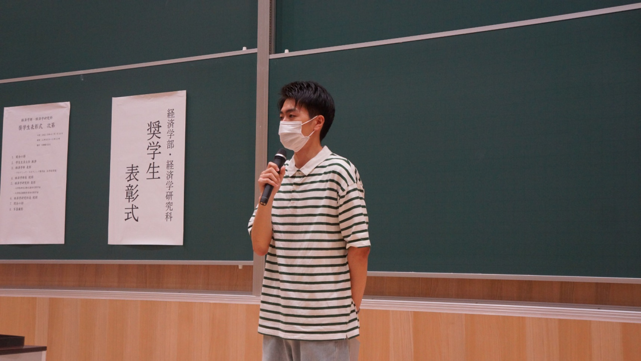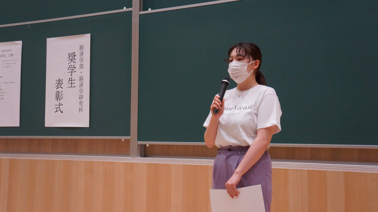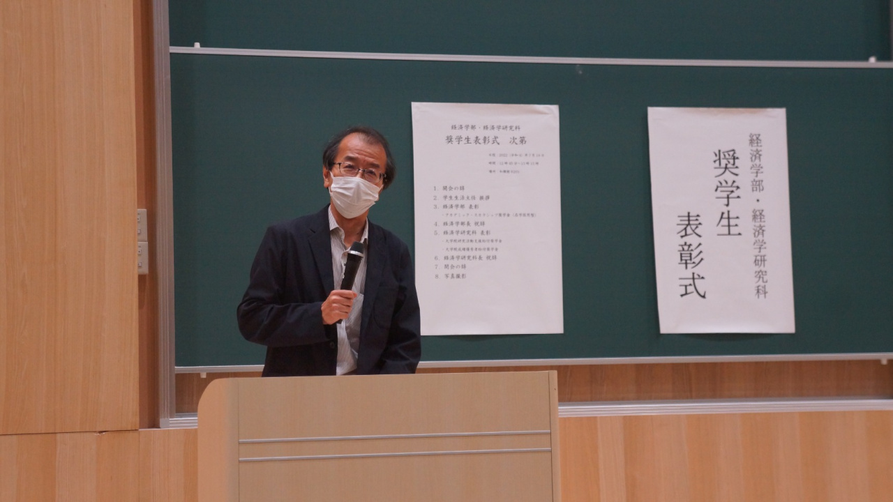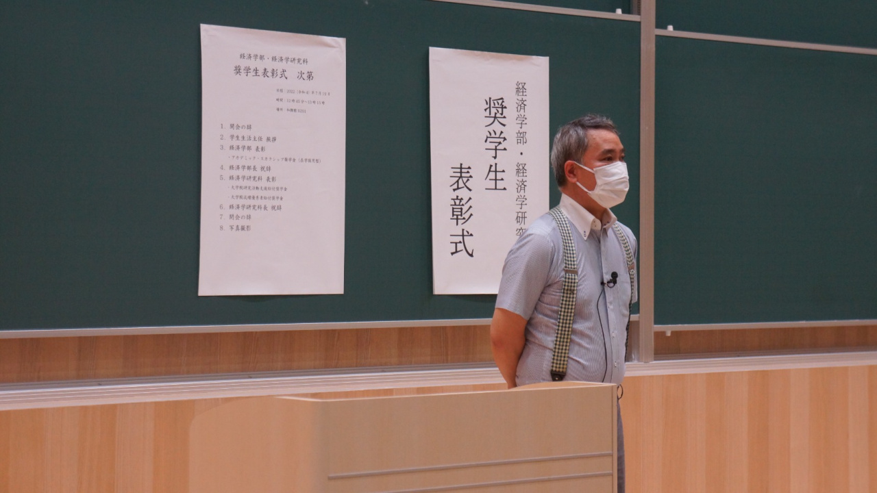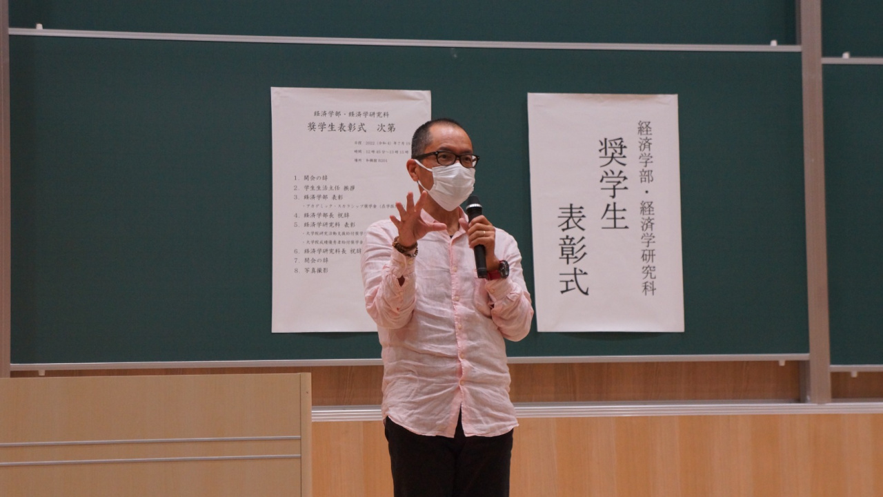 また、経済学部長や経済学研究科長、学生生活主任からお祝いと期待の言葉が述べられました。