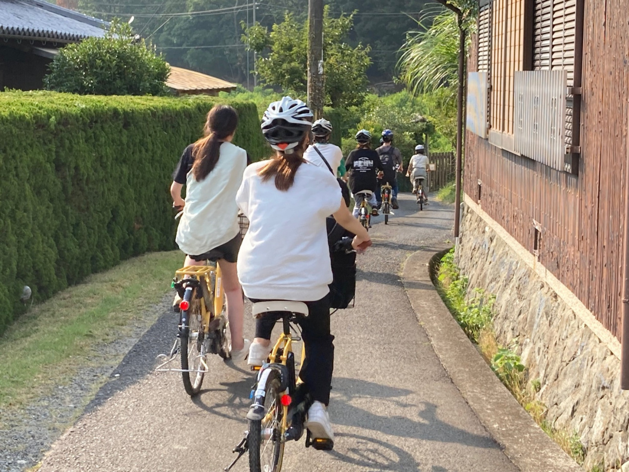 翌日は「千草竹原過ごし方ガイド」の調査として、観光案内所で借りた電動自転車で市内を巡りました。三宮から高速バスで来島した人が自転車で千草竹原まで行くのに何分かかるか、途中に立ち寄るスポットはあるか、どのような行程だと楽しいか、実際に自分たちで走ってみました。この結果をガイドブック作成に反映していきます。