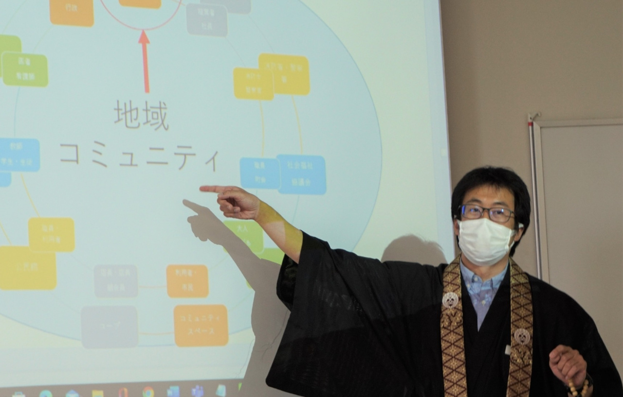 ご講演を伺う前、受講生たちの関心は、西正寺で地域の方々と連携して実施されている「カリー寺」という一つの活動への興味が中心を占めていましたが、一つの活動の背景にお寺が地域の方々とはぐくんできた歴史やそのお寺を取り巻くより広い社会状況との関係について、改めて考えさせられる時間となりました。