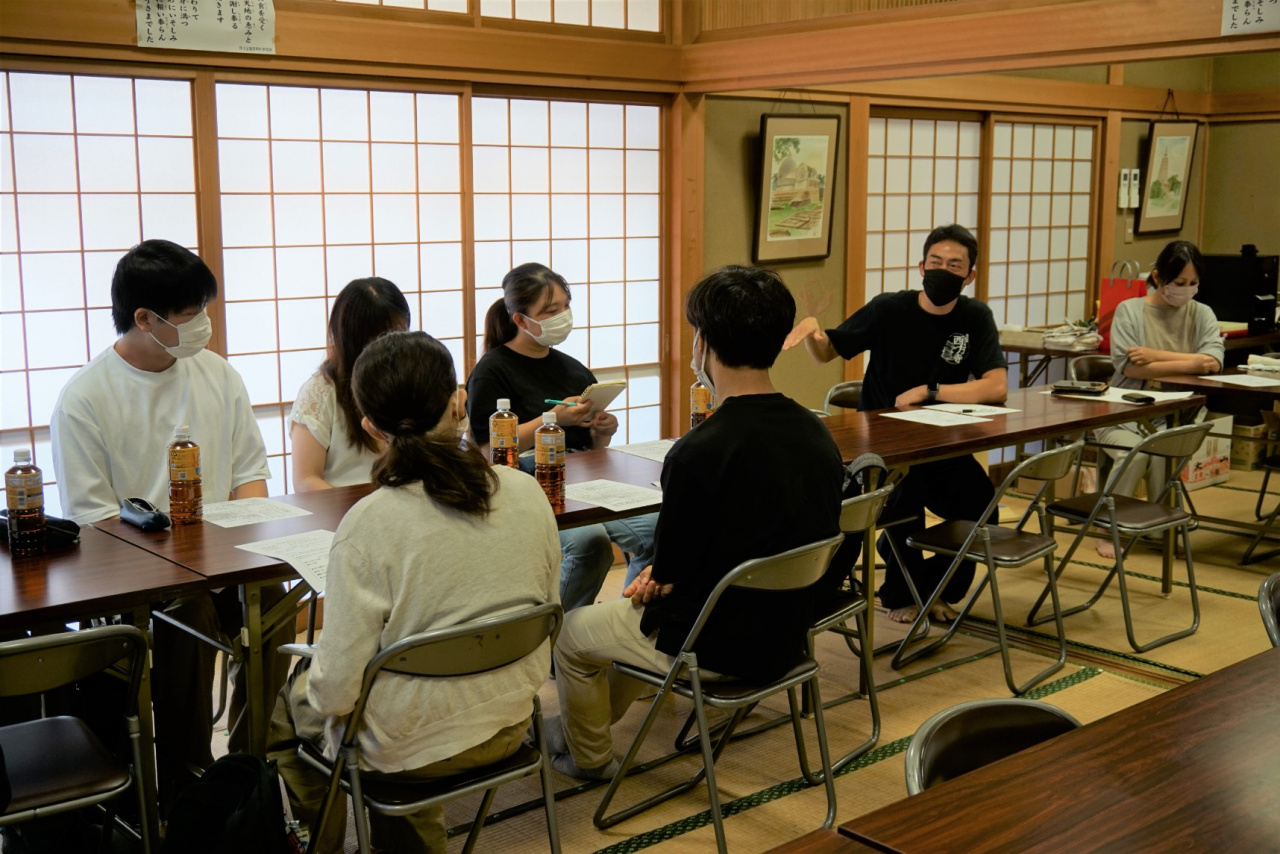 4月から実施してきた、ご僧侶による講演(浄土真宗本願寺派「子ども・若者ご縁づくり」推進室長・弘中貴之先生)、お寺でのフィールドワーク(訪問順に:浄念寺・西本願寺・一念寺・覚明寺)で得られた学びをもとに、各受講生が自分の関心に基づいてさまざまな活動をされているご僧侶、お寺について調査を進めました。受講生一人ひとりから提案された案をもとに全員で議論し、ご講演は兵庫県尼崎市にある浄土真宗本願寺派・西正寺のご住職・中平了悟先生に、フィールドワークは滋賀県草津市にある浄土宗・西方寺様に依頼することになりました。それぞれの企画を実施させていただくべく、受講生自身が依頼と日程調整を担当して企画・運営を進めました。双方とも、大変ありがたいことにご多忙の中、快く受講生からの依頼を受けてくださいました。