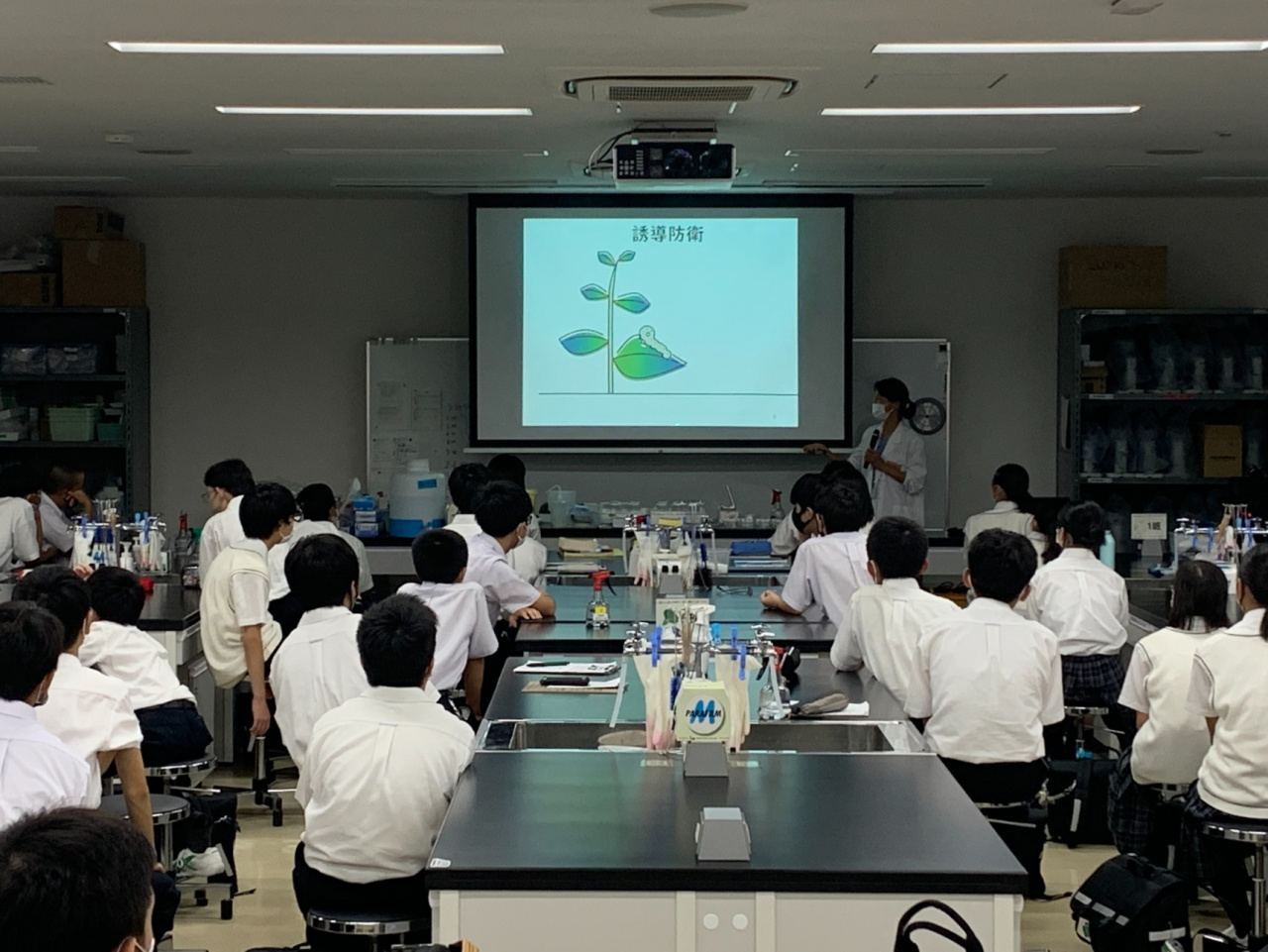 午後からは、農学部教員によるレクチャー「生命と地球の歴史」(資源生物科学科提供)と「植物と虫のコミュニケーション」(植物生命科学科提供)を受講。担当した教員から「地球にはまだまだ解決できていない問題が多々ある。それを解決していくのは皆さんの世代になる。頑張って勉学に励んでいただきたい」とエールを送られていました。