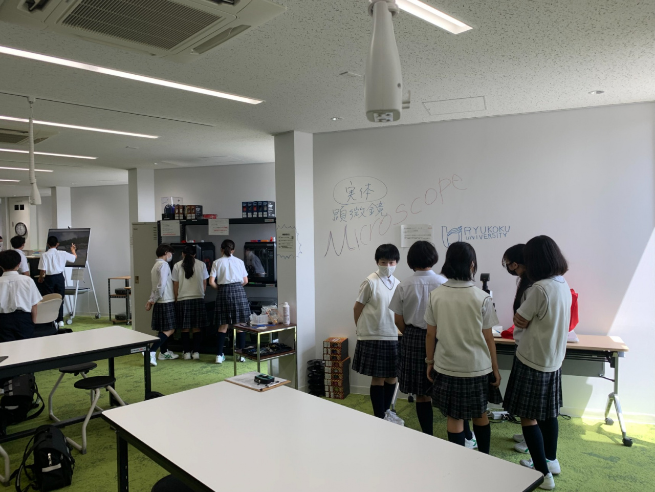 付属平安中学校の1年生を対象にした夏の勉強合宿が8月22日と23日にあり、22日は瀬田学舎で一日活動を行いました。龍谷大学で付属平安中学生の勉強合宿を受け入れるのは今回が初めてです。