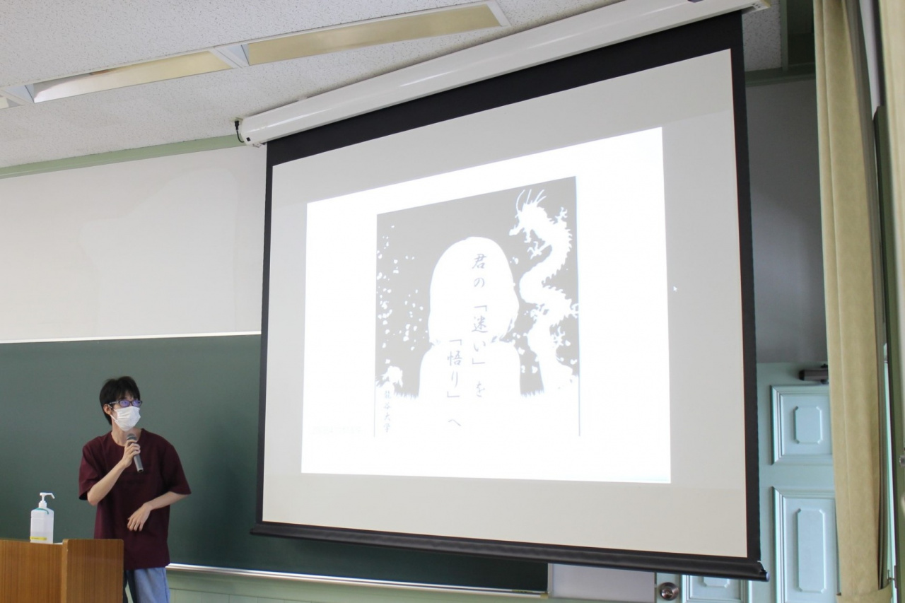 龍谷大学文学部の開講科目「情報メディア論A」7月21日(木)の最終講義では、各受講生が「高校生にひびく龍谷大学のポスター」の発表を行いました。