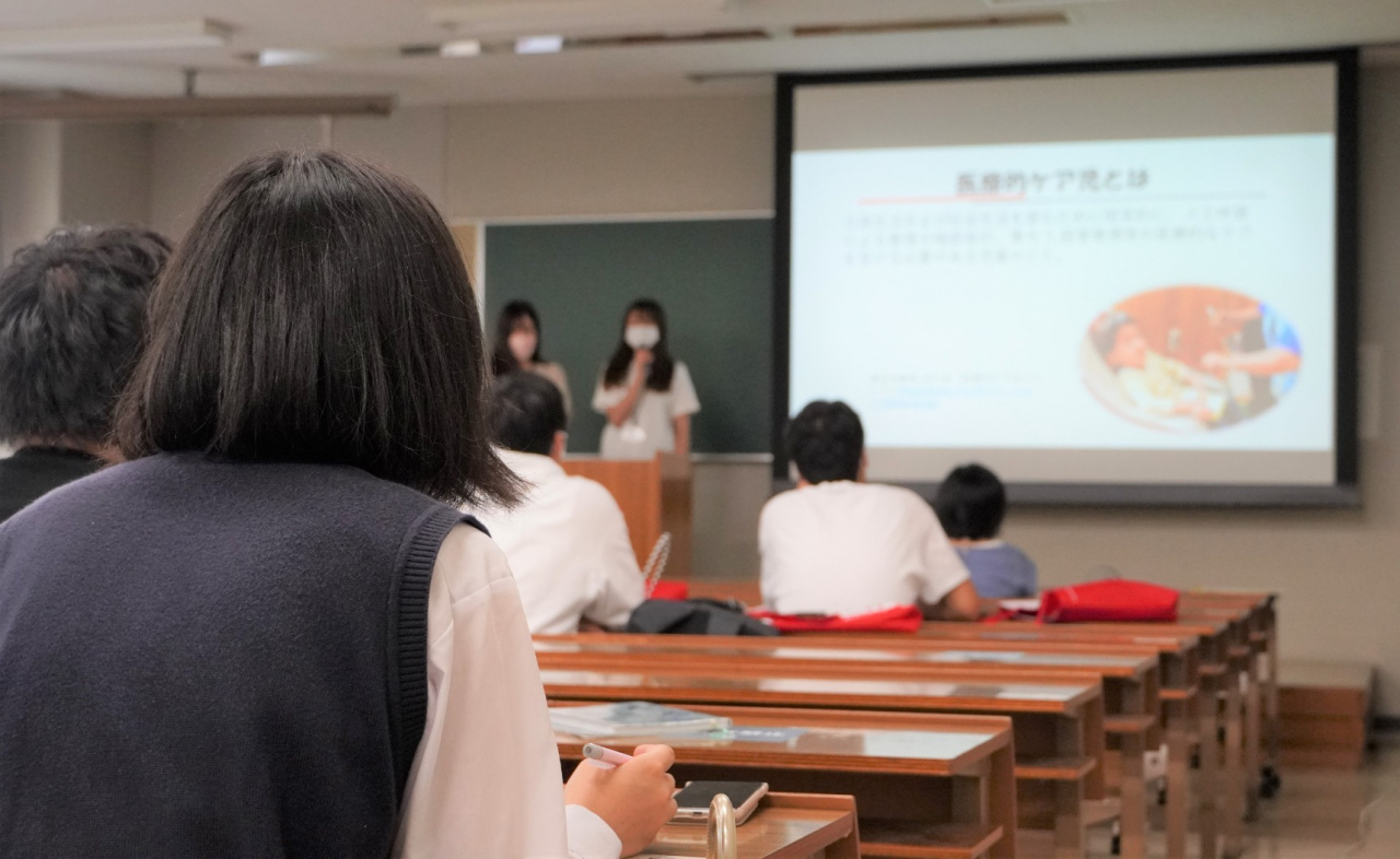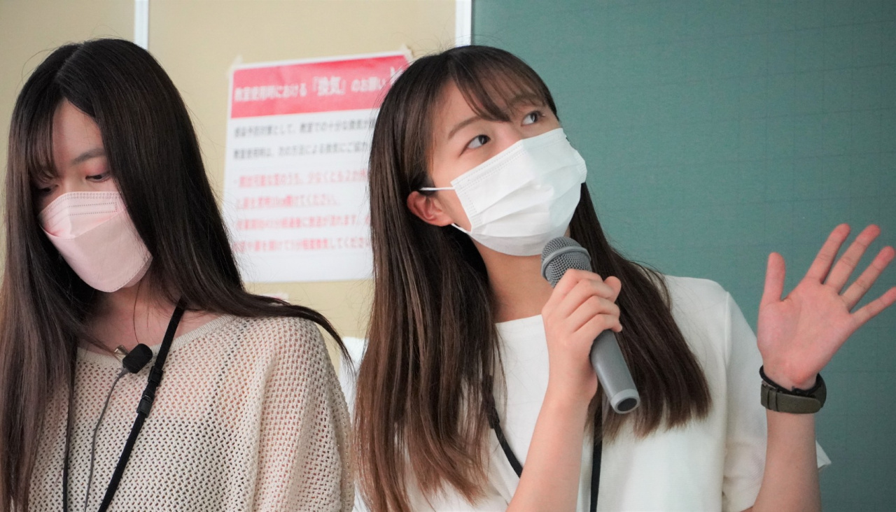 受講生による前期の活動内容の発表や受講してみての感想、また担当教員からのプロジェクト紹介やメッセージなどを来場してくださった高校生にお届けし、大学の授業や実習の雰囲気を少し感じていただくことができました。