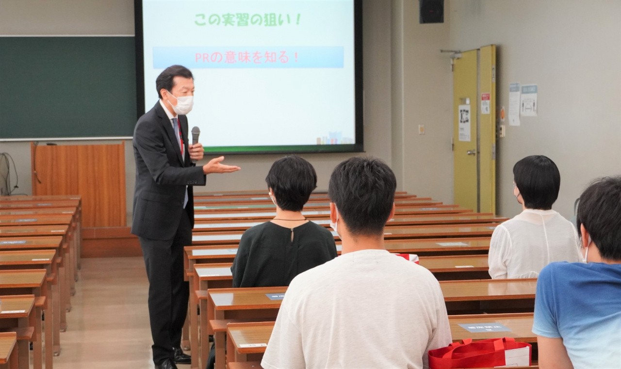 「自治体をPRしてみる!」では、担当教員よりPRの意味についてお話し、PRとは良い部分を紹介することではないということ、PR作成時には、まず既存のイメージを壊すところから始めるなど高校生にとっても新鮮な考えをお伝えしました。昨年度の受講生が作成したPR動画も紹介し、興味を持っていただけた様子でした。