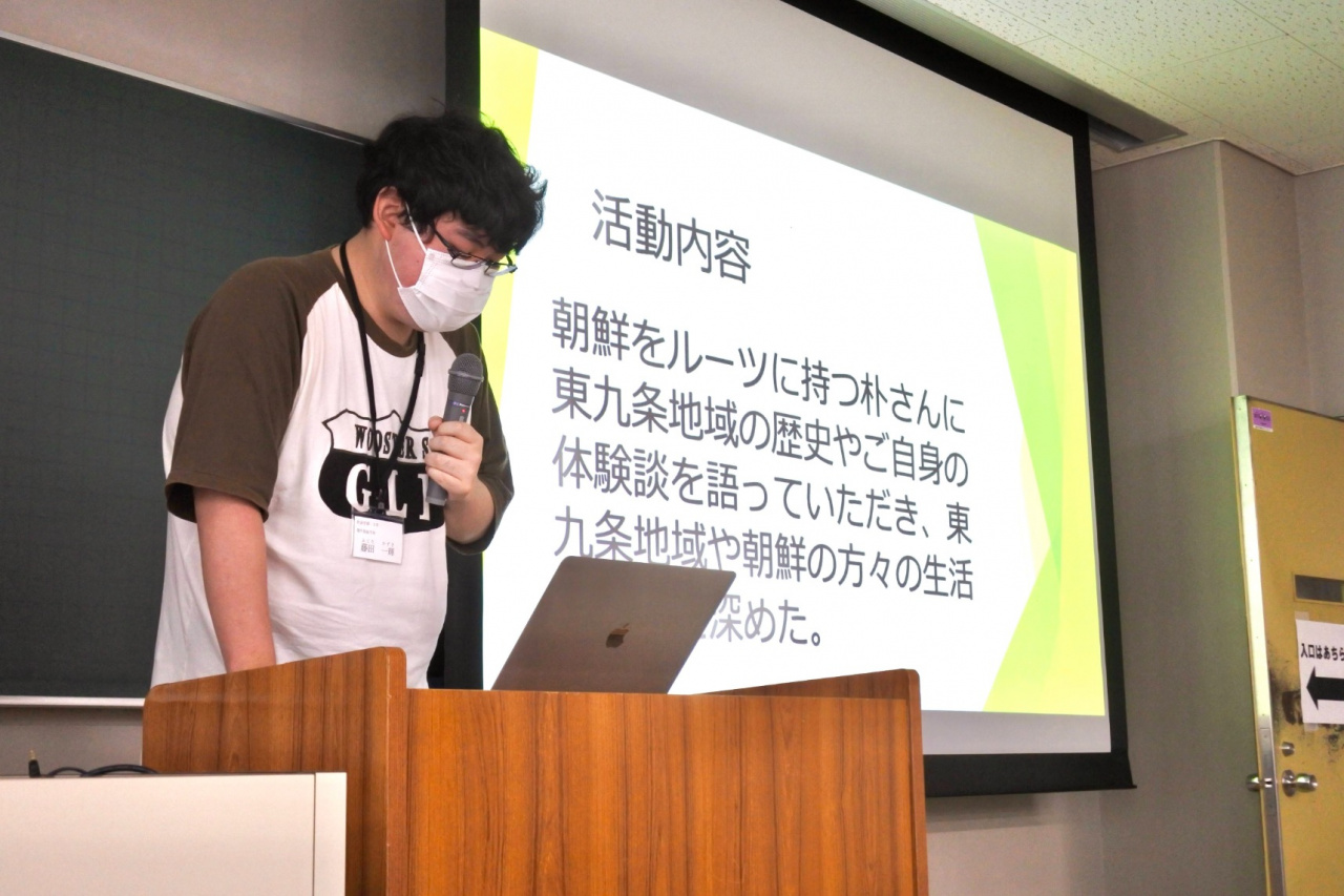 「多文化共生のコミュニティ・デザイン~定住外国人にとって住みやすい日本になるには?~」では、グループに分かれて3か所の活動先に行き、在日コリアンの方や外国人の方々から貴重なお話を聞くことができました。東九条にある「コミュニティカフェほっこり」では、朝鮮をルーツに持つ利用者の方からお話を聞き、受講生は「差別を受けてこられたリアルなお話を聞き、この多文化社会で多様な人々と共生して生きていくために、お互いが求めていることをコミュニケーションを取りながら知っていくことが重要だと感じた」との感想を述べていました。