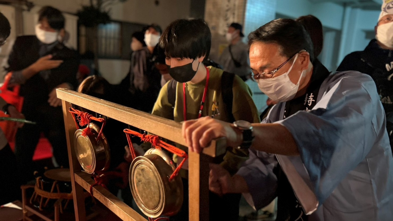 10/8(土)の宵宮では、曳山から流れるお囃子にあわせて太鼓や鐘を鳴らすことができる体験イベントをおこなったところ、予定していた2時間ほとんど途切れることなく地元の子ども連れのご家族がたくさん参加してくださいました。