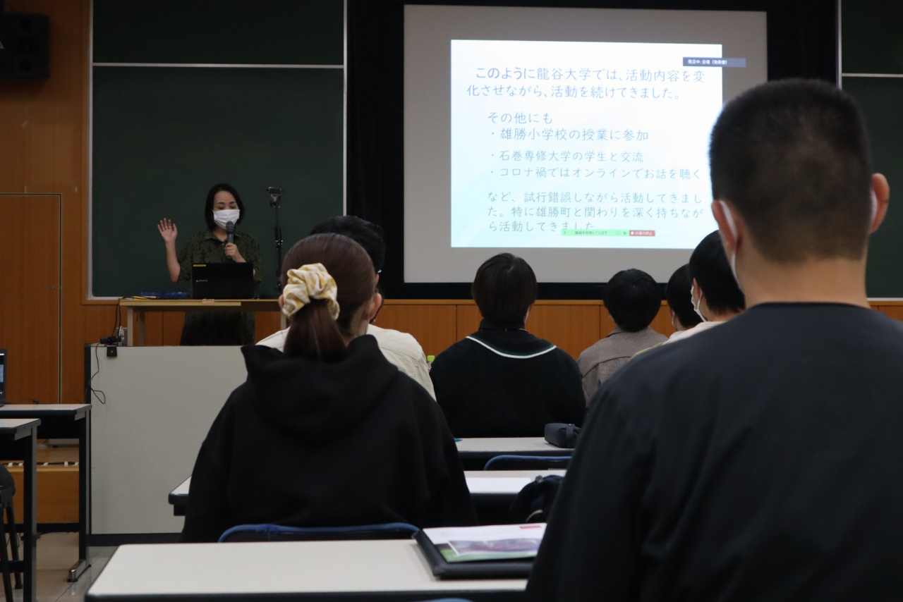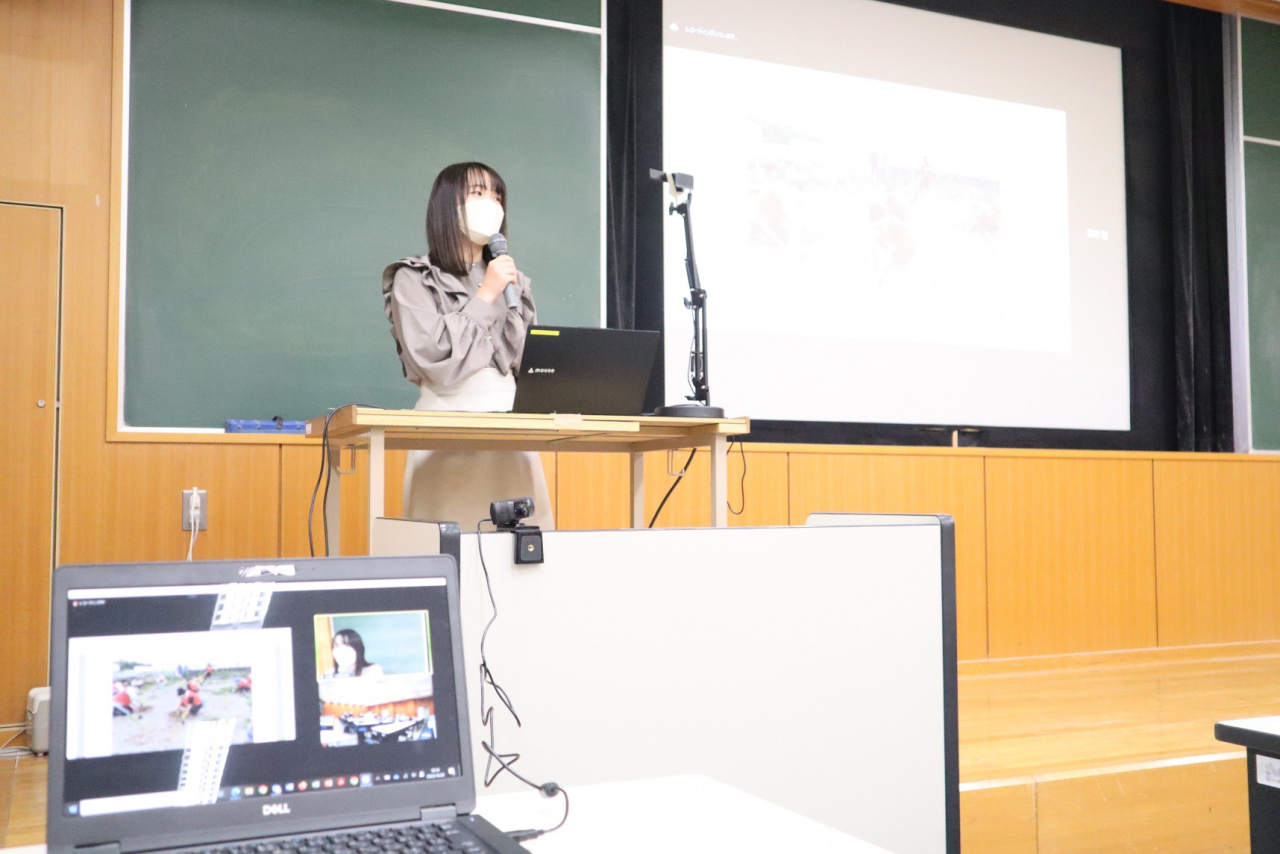 ②の東日本大震災被災地域でのボランティア活動報告会では、これまでの本学の復興支援活動の取り組みについてコーディネーターより紹介し、その後、今回の活動についてまとめた動画をご覧いただきました。そして、活動に参加した学生が、参加して感じたこと、みんなに伝えたいと思ったことについてそれぞれが自らの言葉で語りました。