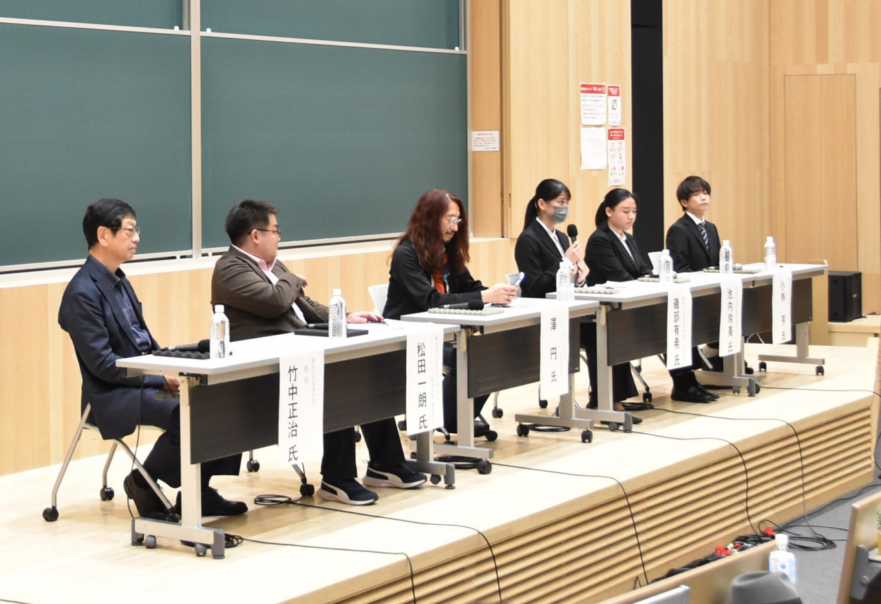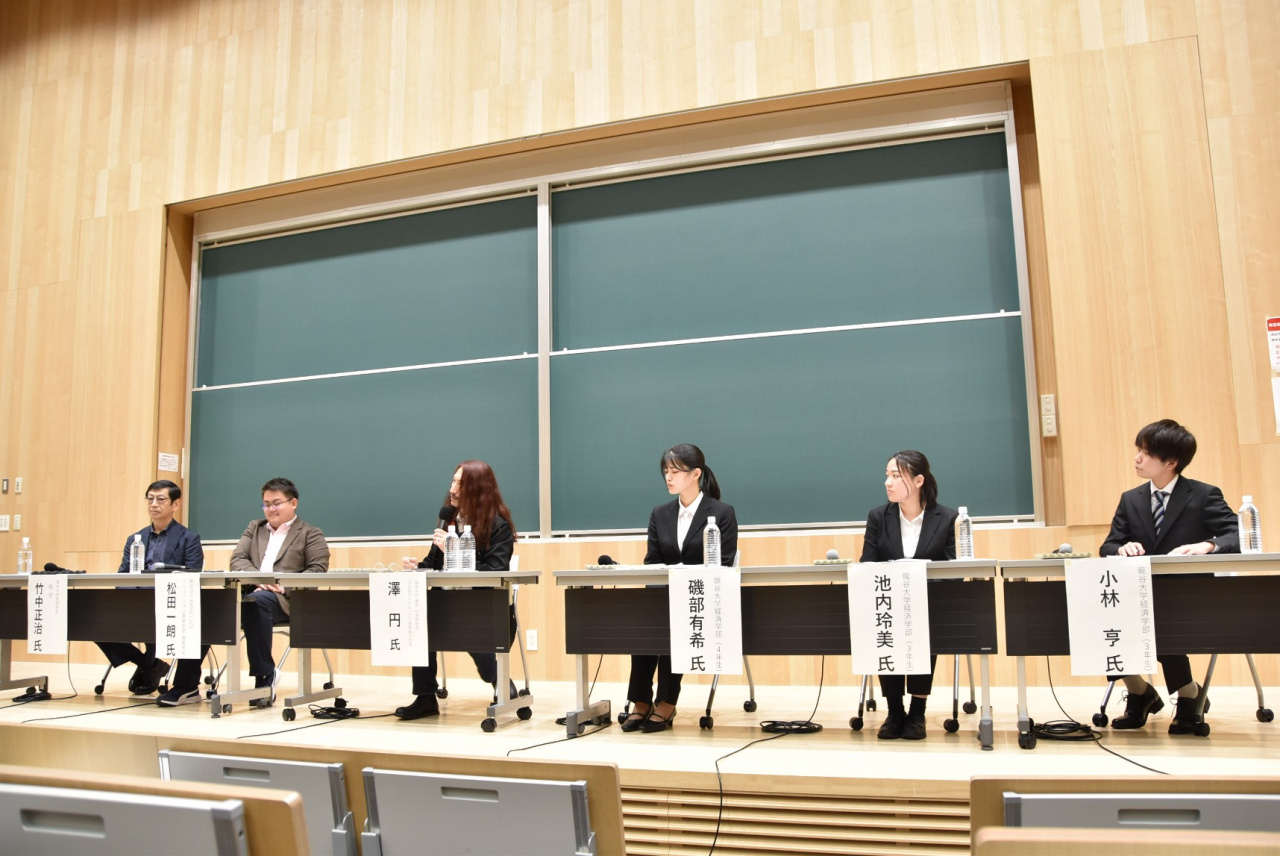 経済学部卒業生や在学生、教職員を中心に対面70名、オンライン90名の計160名が参加し、参加者からは多くの質問が寄せられました。