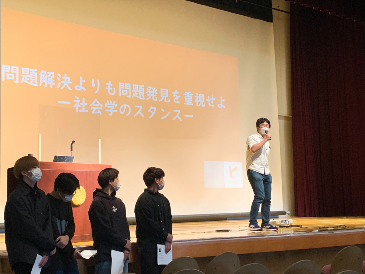 また、まとめとして、「社会学とは、世の中にはいろんな境遇の人、いろんな意見や価値観を持つ人がいることを前提に、自分も含めてなぜこの人はこんなことを言うのだろうかとの言い分をインタビューやアンケートで調べながら、どうしたら少しでもマシな未来が作れるかを考える学問。世の中で言われる出来合いの課題と解決策のセットを受け入れるのではなく、まずは隠れている問題を発見してほしい。問題発見には若い力が必要です。大学生になれば学生生活も楽しみながら、ぜひ頭をガンガンに使ってください」とエールを送っていました。
