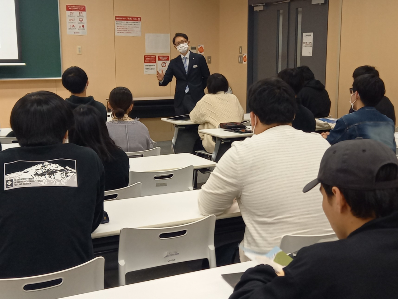 その一環として、京都市わかもの就職支援センターやNPO法人コアネットと連携をして、「地域産業論」や「日本経済論」の講義の中で、ものづくり企業の第一線で活躍してきた方々の知識と経験から学ぶ機会を数多く設けています。