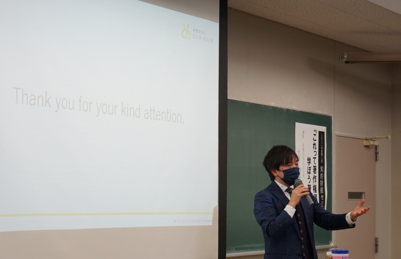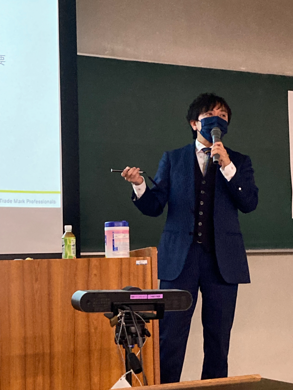 講演会においては、知的財産や著作権に関する基礎知識から、普段身の回りにおける知財ニュース、大学生も気を付けないといけないSNS投稿などまで、