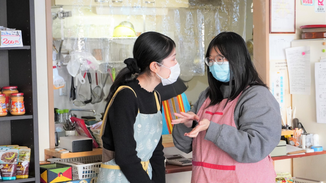 陸さんは中国からの留学生ですが、他大学からの実習生に物の場所や常連客のお名前などを親切に教えてもらいながら、自分にできることを考えて取り組んでいました。