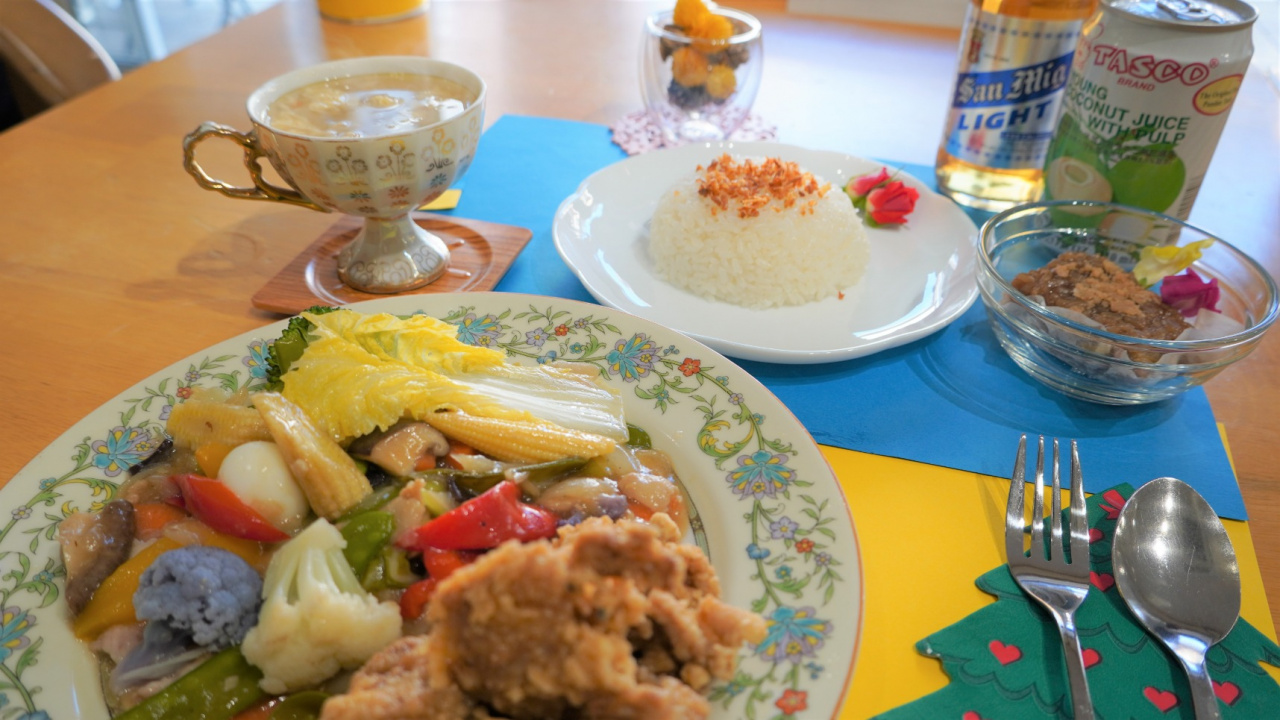 「ほっこり」では、土曜日のランチを「多文化メニュー」と題して、他国の料理を提供しておられます。この日はフィリピン料理でした。お昼時の忙しい時間帯が過ぎてお客様の足並みもまばらになると、「ほっこり」スタッフの皆さんと一緒に昼食をとりながら、「多文化メニュー」の背景に思いを馳せることになりました。