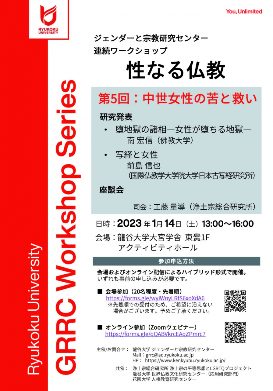連続ワークショップ「性なる仏教」 第5回「中世女性の苦と救い」(1/14) 開催および参加者募集のご案内