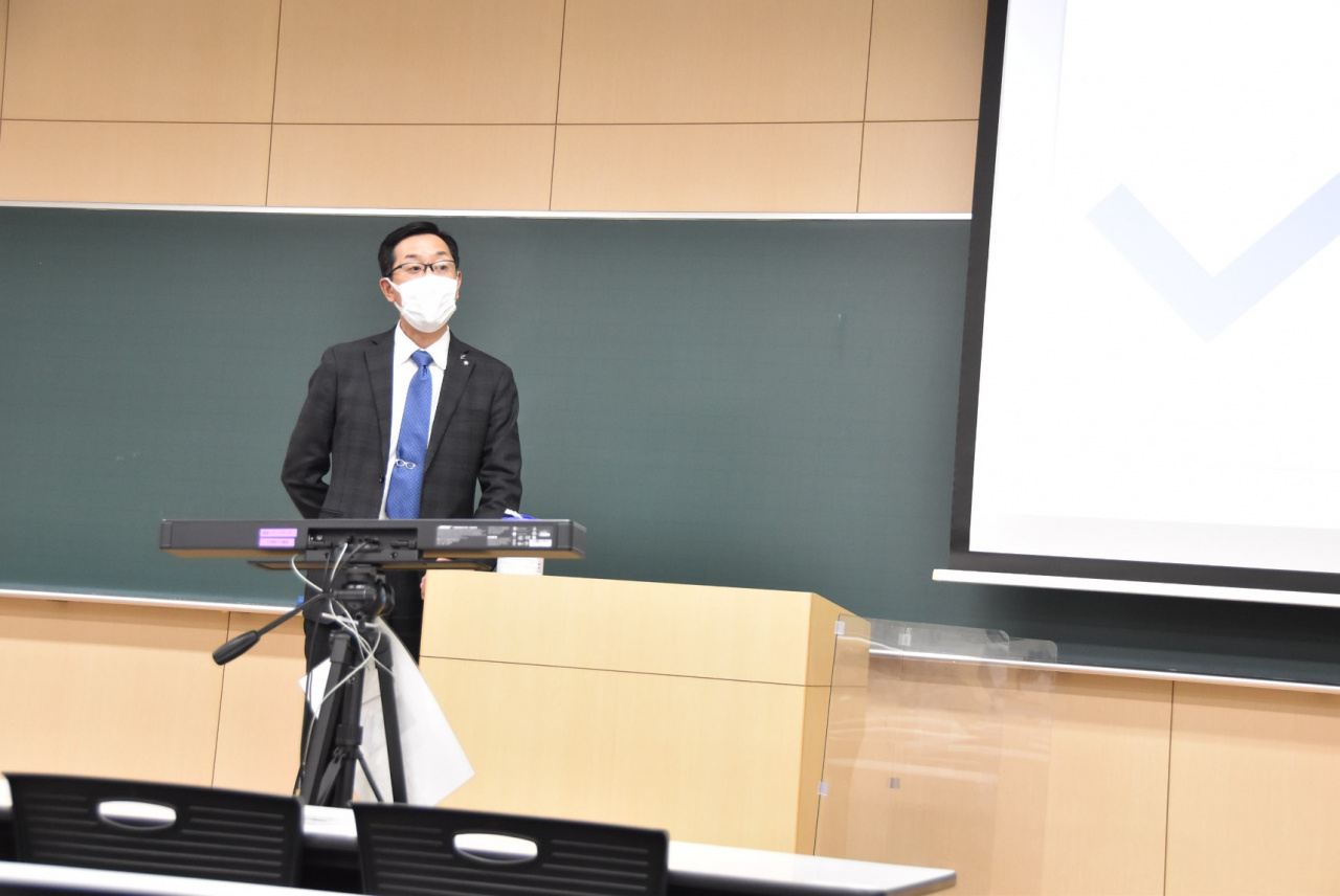 経営学部特別講義「我が社の経営と京都」において、京都エレベータ株式会社 代表取締役 田中陽一 氏にご講義いただきました。
