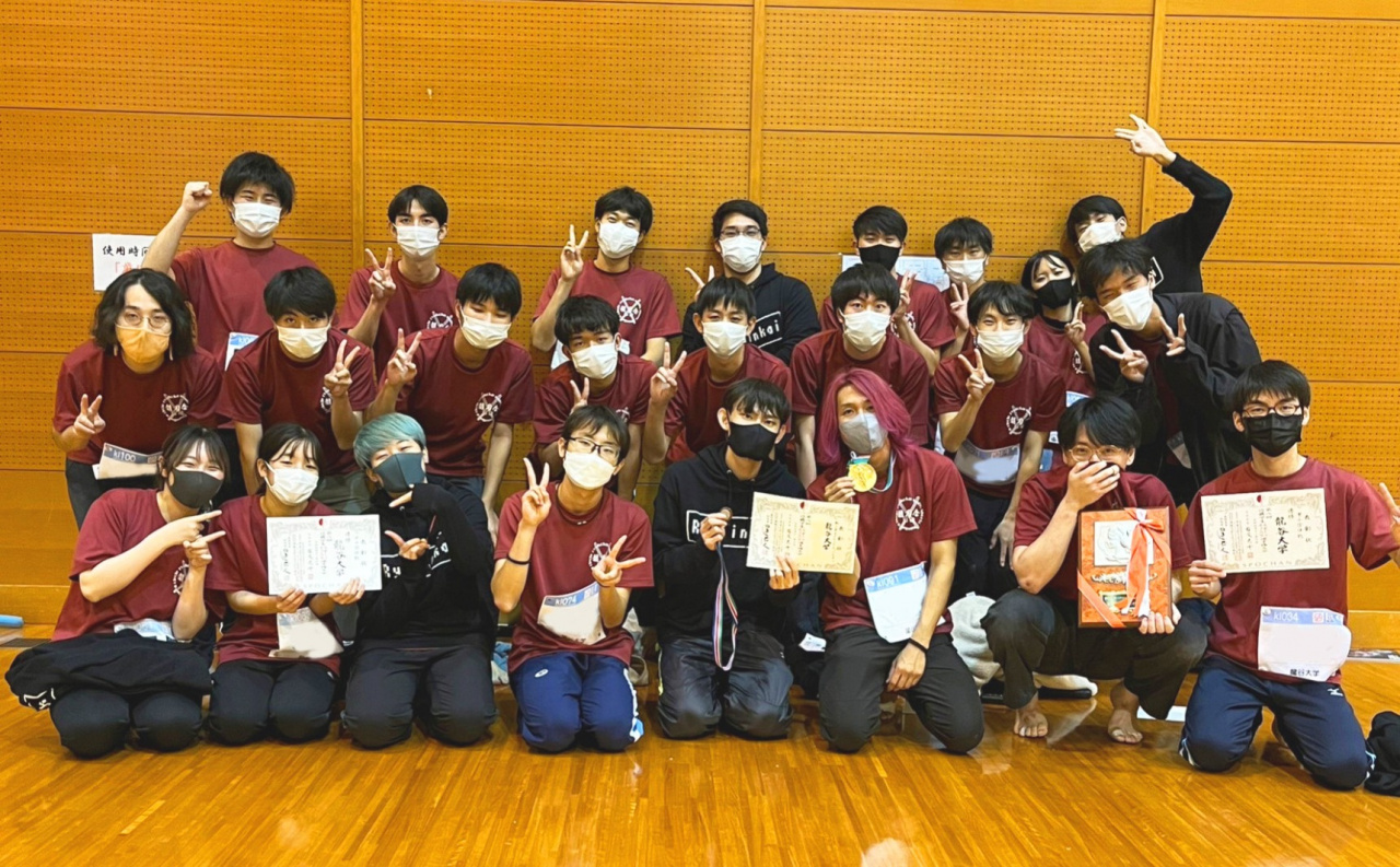 2022年11月6日(日)、日本スポーツチャンバラ学生連盟主催 第8回近畿学生選手権大会が滋賀県の草津市立武道館にて開催され、龍谷大学一般同好会スポーツチャンバラサークル龍刃会(りゅうじんかい)が、男子団体戦、女子団体戦ともに優勝(アベック優勝)し3連覇の偉業を果たしました。