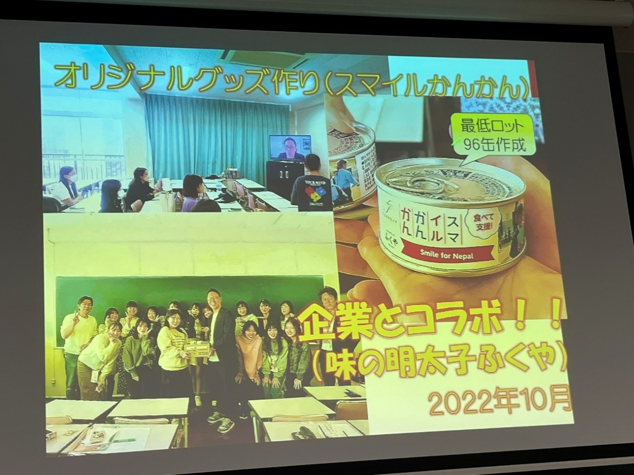コロナ禍前には実際にネパールを訪問し、子どもたちに文房具を届けたり、女性がつくった製品を仕入れて日本の国内で(対面)販売したりしていました。しかし、コロナ禍では活動のスタイルを変えざるを得なくなりました。2020 年度以降は、SNSでの情報発信やネットを通じた通信販売、オリジナルグッズの製造・販売にも取り組んでおり、最近では、地元企業とのコラボ商品の製造・販売もしています。