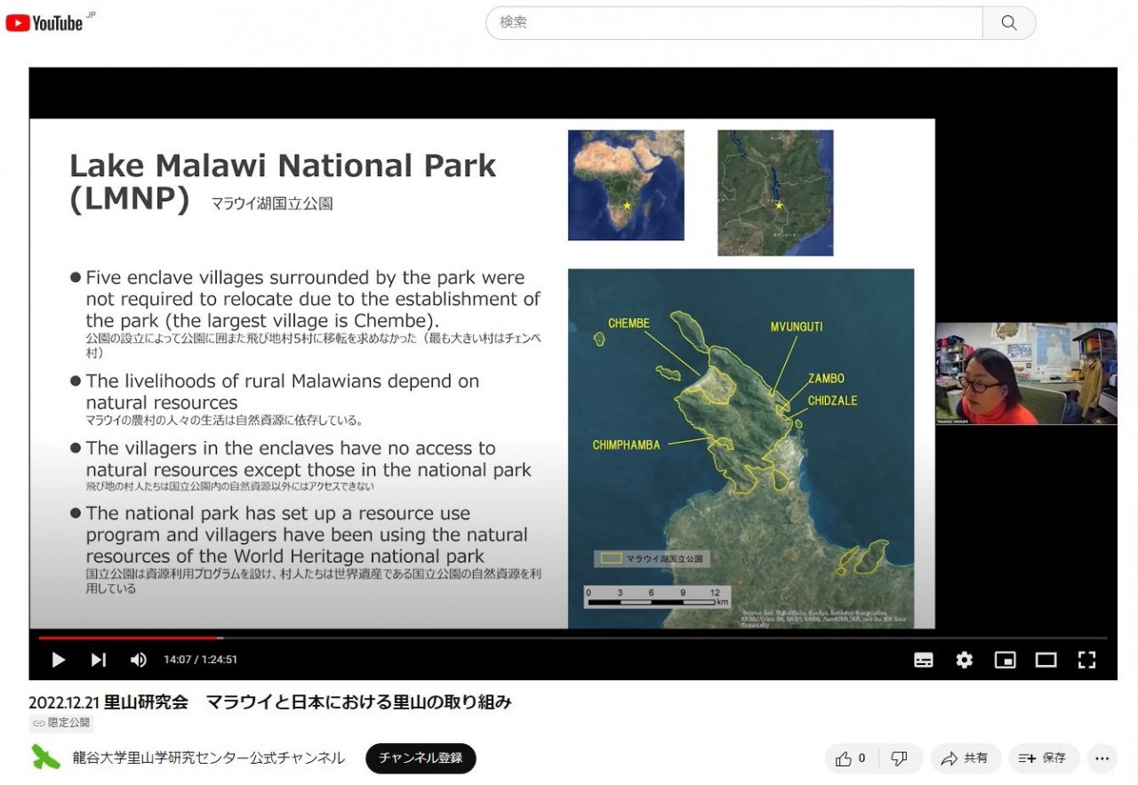 里山学研究センターは、2022年12月21日(水)に「JST-JICA SATREPS マラウイ湖国立公園における統合自然資源管理に基づく持続可能な地域開発モデル構築」との共催で公開研究会を開催しました。