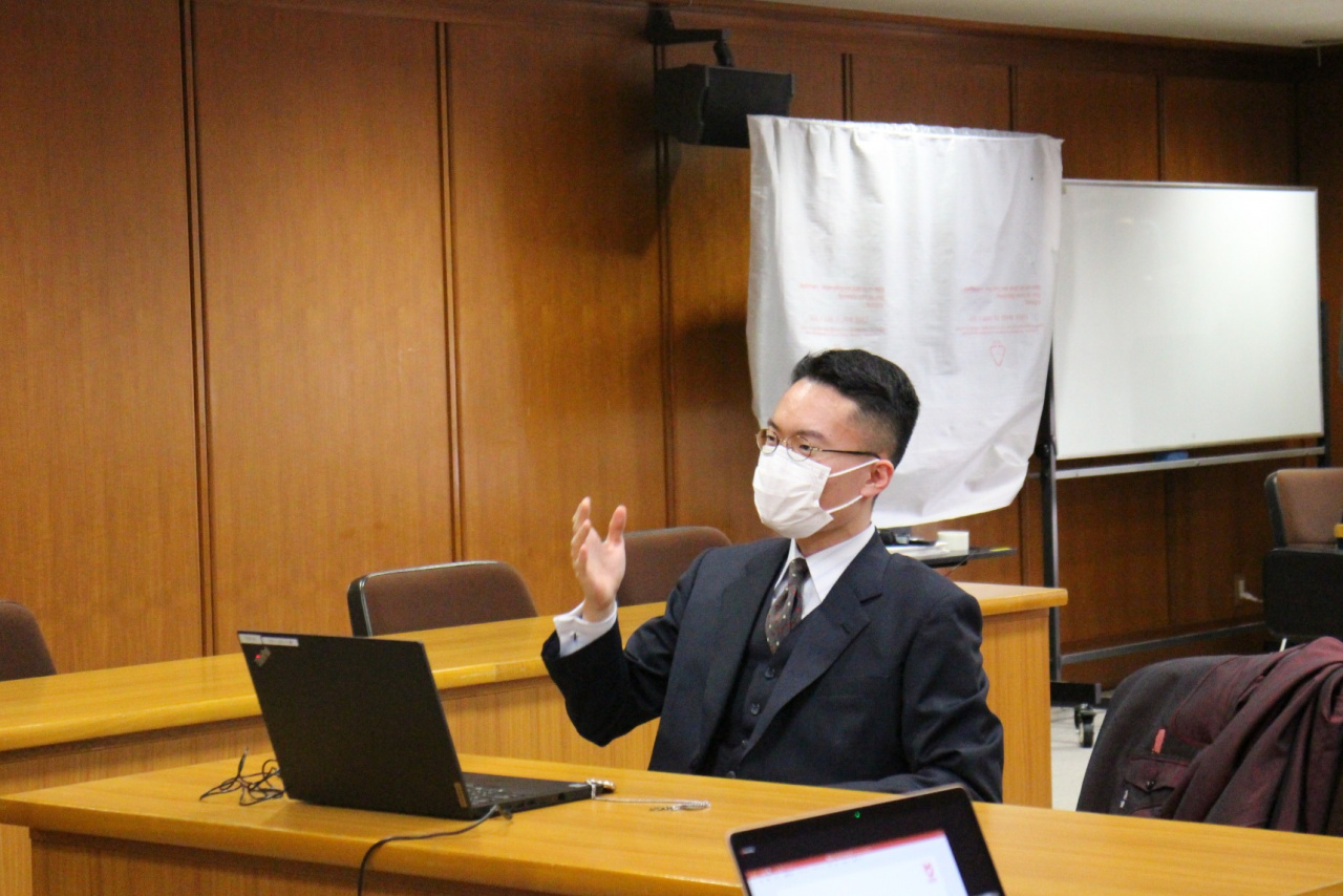 岩尾一史先生(文学部教務主任/歴史学科東洋史学専攻)の総合司会のもと、 岸田泰和さん(哲学科教育学専攻)、辰巳ひかるさん(歴史学科文化遺産学専攻)、藤田朋久さん(仏教学科)から、それぞれの卒業論文の内容を紹介していただきました。