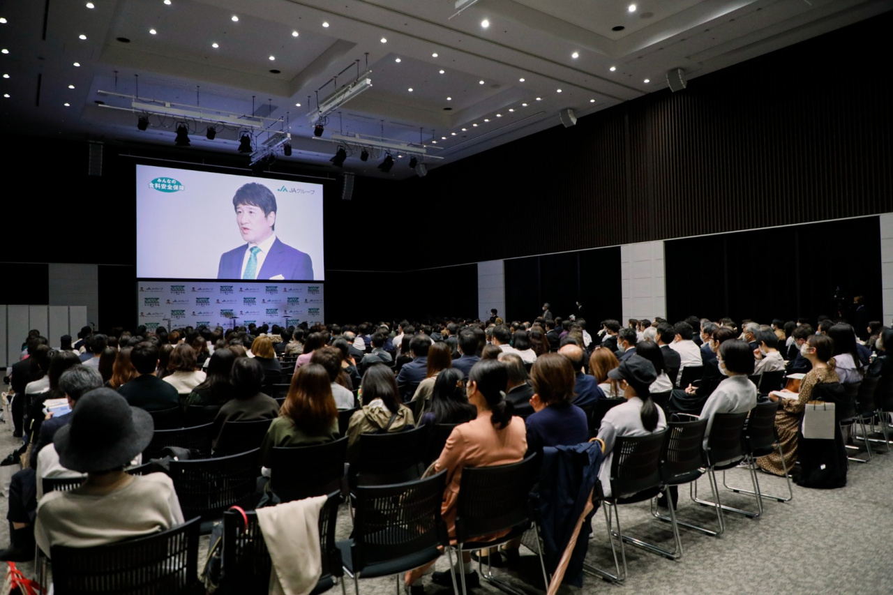 このブロック優勝したアグリカルチャーコンペティションで、プレゼンテーションの様子を見てくださっていた関係者の方が、関西代表として是非藤岡ゼミ生にと翌年一般社団法人 全国農業協同組合中央会(以下、JA全中)が主催するシンポジウムで登壇の機会をいただきJA全中会長とともに登壇することに。その時の様子はニュースにしていますので、ぜひご覧ください。人生で一番大勢の方に話したのがとても良い経験になったそうです。