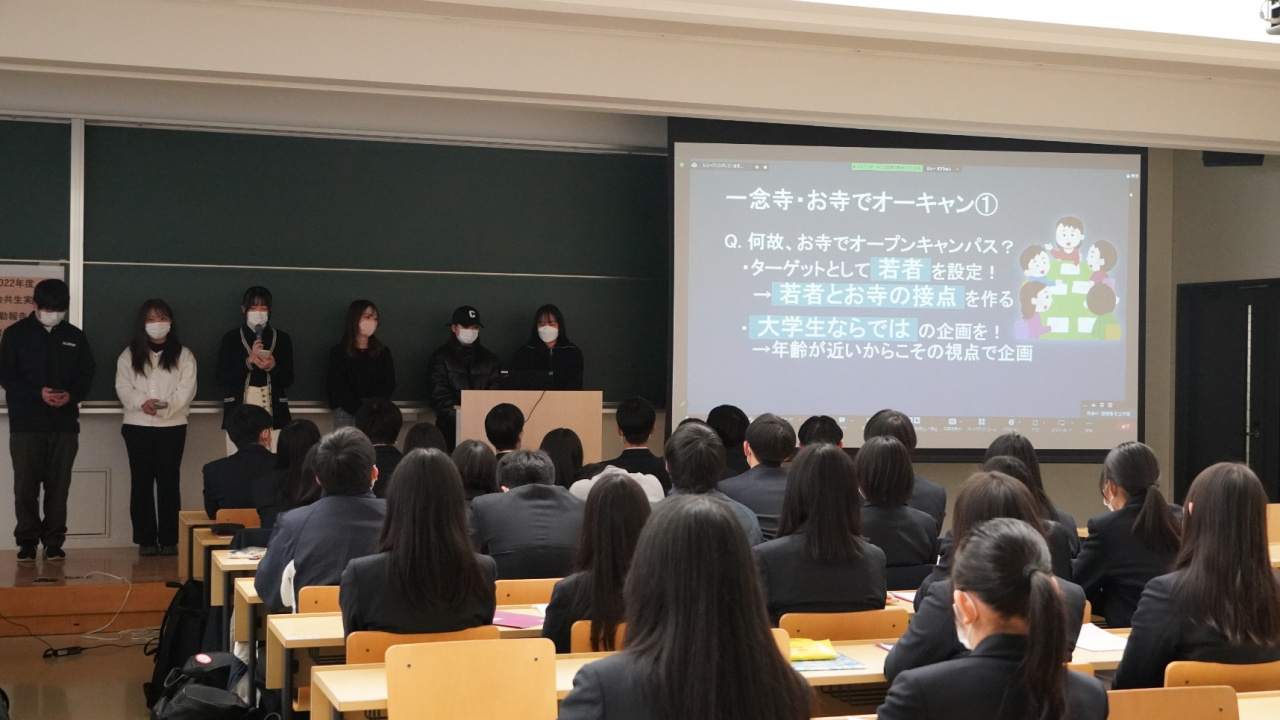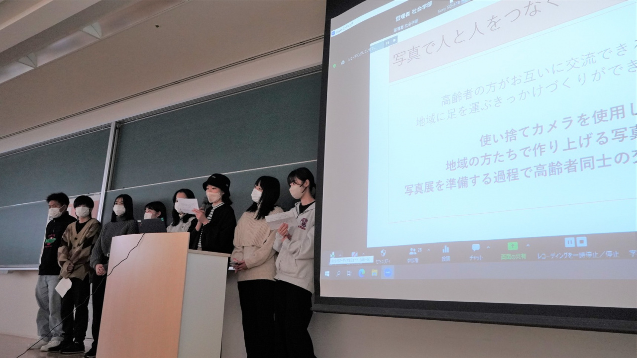 社会学部の全3学科横断科目「社会共生実習」では、1月13日に全9プロジェクトの活動報告を対面とオンラインでおこないました。
