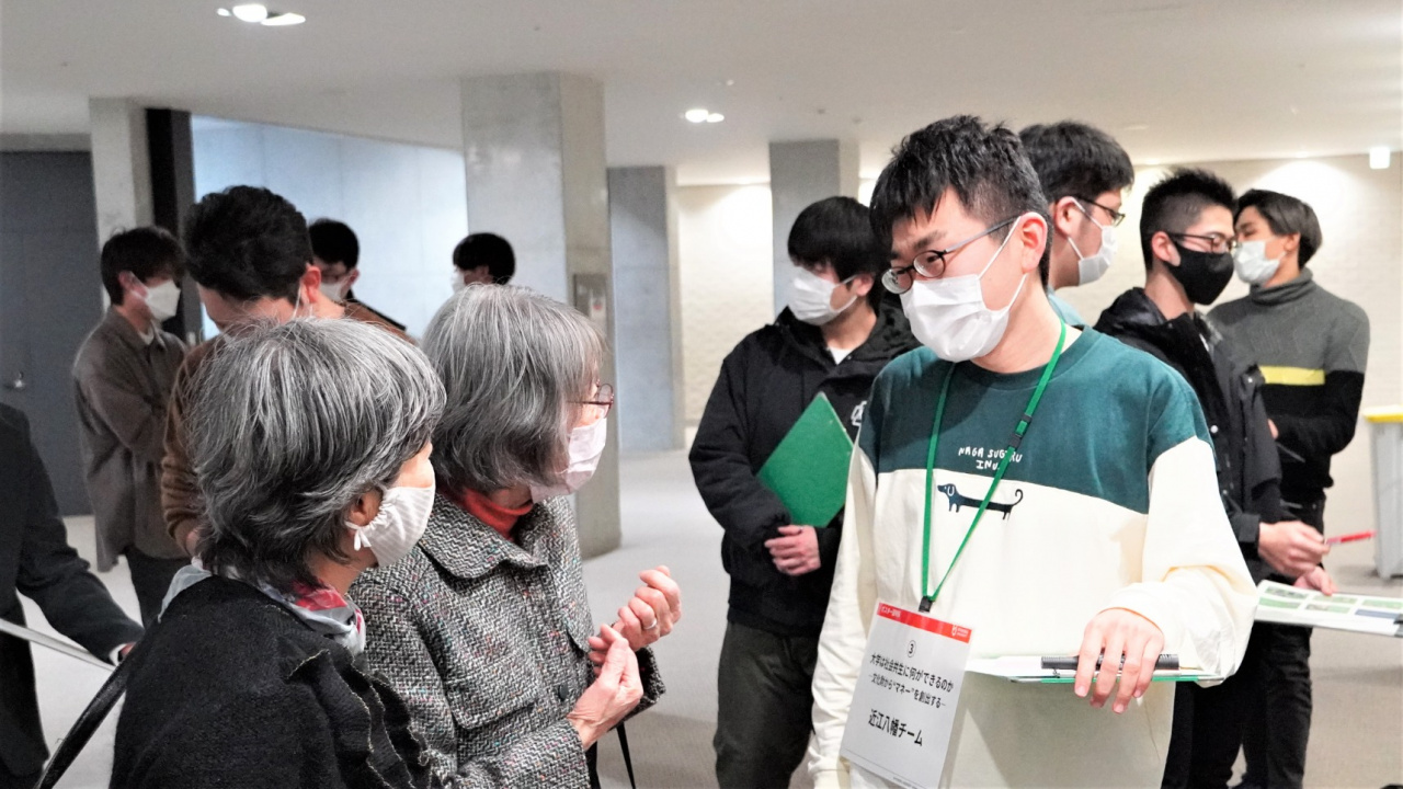 高齢者へのインタビューでは、例えば「あまり歩きたくない(歩けない)」、「公共交通機関を利用することに不安がある」、「バリアフリーが必須」、「ツアーは段差や坂道が少ない場所が良い」、「ツアーでは天ぷらなど普段食べないものを食べたい」、などといった外出における課題やツアーへの要望を知ることができた。それらを踏まえたうえで、3つのツアーを企画し、それぞれプレゼンテーション、意見交換を経て、実施するツアーをひとつに絞った。