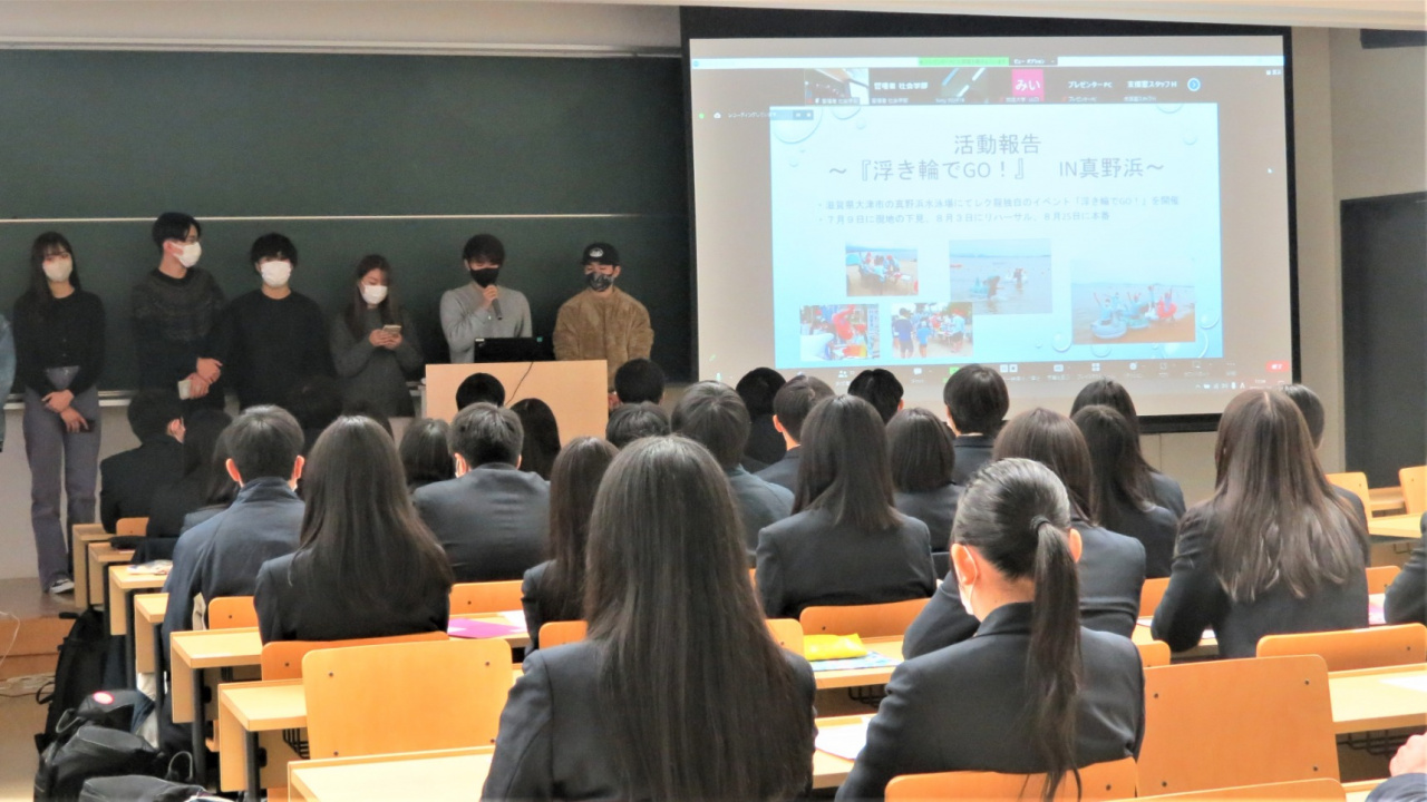 イベントの企画・実施では、8月25日に滋賀県大津市真野浜水泳場にて「浮き輪でGO!」という、ひとりが浮き輪に乗って、もうひとりがその浮き輪を引っ張ってタイムを競うレースを開催した。たくさんの方に参加いただけた一方で、思うように進行できなかった反省点もあり、事前準備の重要性を身に染みて感じた。