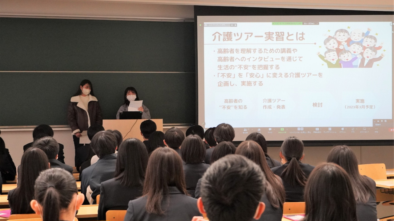 本プロジェクトでは、高齢者を理解するための講義や高齢者へのインタビューを通じて高齢者が抱える課題や日常生活での困りごとなどの生活への不安を把握し、安心と楽しさを提供できる介護ツアーを企画し、実施することを目的としている。