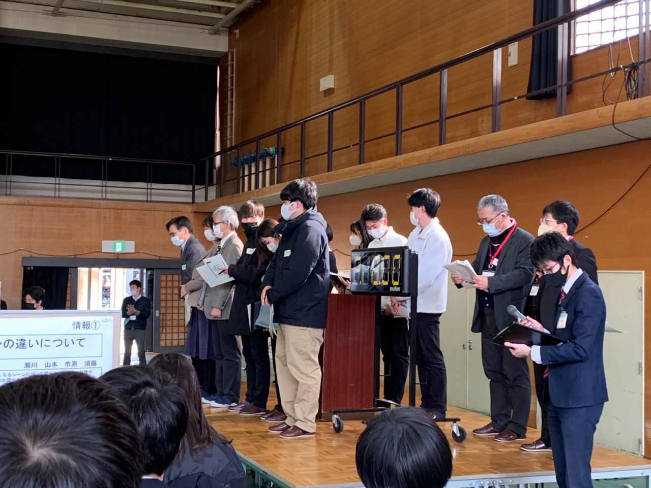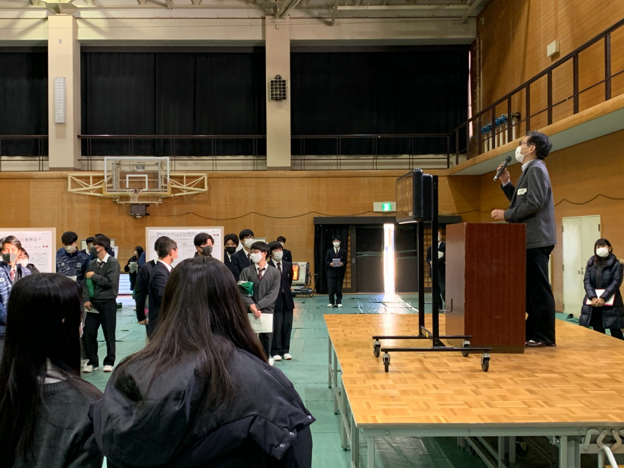 講評者の代表として最後に挨拶に立った藤原教授は「どれも素晴らしい内容で全国でも通用するレベルだった。本当はすべての研究成果を聞きたかったが、時間の関係で全部聞くことができず残念。非常に興味深く説明を聞かせていただいた」と高評価のコメントを送りました。