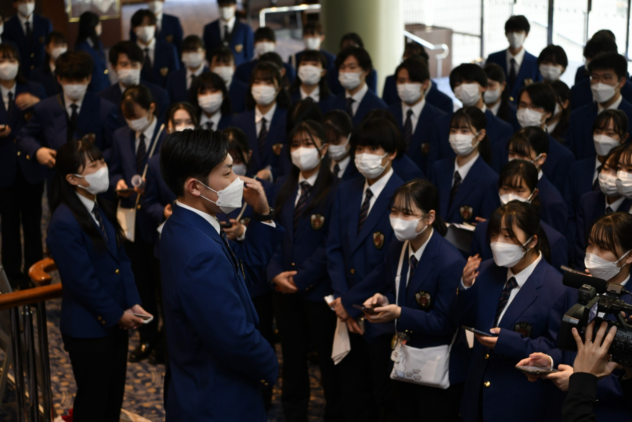 吹奏楽部の役職は立候補制であり各学年で決めますが、全員の85%の支持を得て当選します。2年生の時に幹事長補佐になっていたら、ほとんどそのまま3年生で幹事長になるそうです。濵長さん実は一度支持が集められなくて落選しています。その際にも不信任の理由が「日本語ができていないので、本を読みなさい。」といったように具体的に書かれたそうです。「自分たちの責任で決めたということで、あえて意見についても名前を書く記名制にしています。落選した時は辛くてコンビニでアルバイトをしていたら自然と涙が溢れてきました。」でも4年間で1回しかない、もう一度チャレンジしようと思い、やっとの思いで幹事長補佐を勝ち取ります。