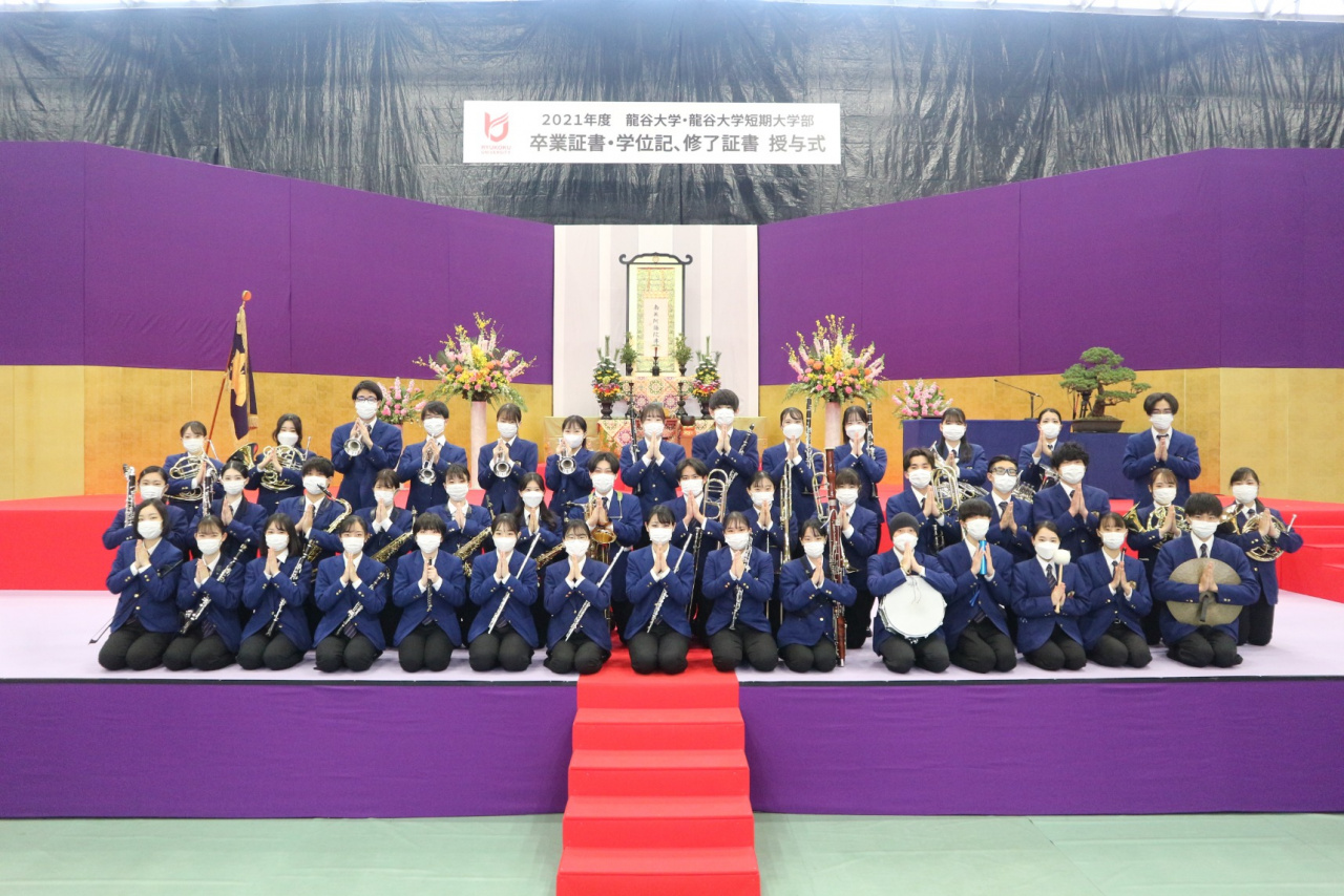 龍谷大学吹奏楽部は1968年創部し、1986年に全国大会へ初出場を果たしました。1992年に初めて全国大会で金賞を獲得し、その後、現在に至るまでに全国大会にて金賞13回、銀賞10回を受賞しています(2023年3月現在)。部員は180人を超える大所帯であり、もちろんその秋の全国大会コンクール(全日本吹奏楽コンクール)で賞を取ることを目指しますが、日々の演奏会、サマーコンサート、年末にある定期演奏会に向けても練習をしています。そのような吹奏楽部はキャプテンにあたり幹事長や演奏面を取り仕切る学生指揮者、会計や楽器管理、衣装管理など多数の役職があり、組織立てがなされ運営されています。今回紹介する濵長さんはその幹事長を担いました。何故目指そうと思ったのか、どのような仕事なのか、お話を聞きました。