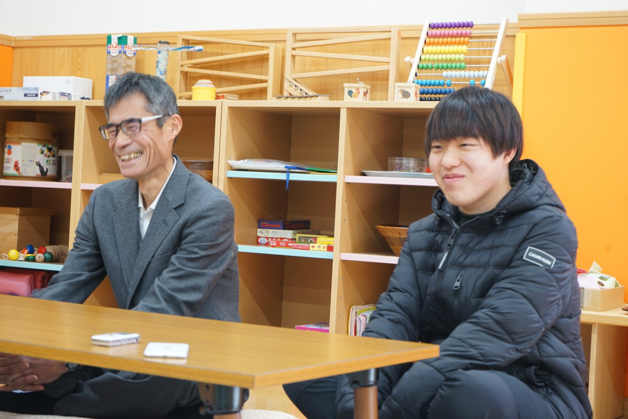 この日、内本さんのインタビューに友人の玉井颯さん(短期大学部こども教育学科2年)も駆けつけてくれました。玉井さんは「内本さんの行動力は凄いなと思います。色んな意味で面白い友人です」と話していました。