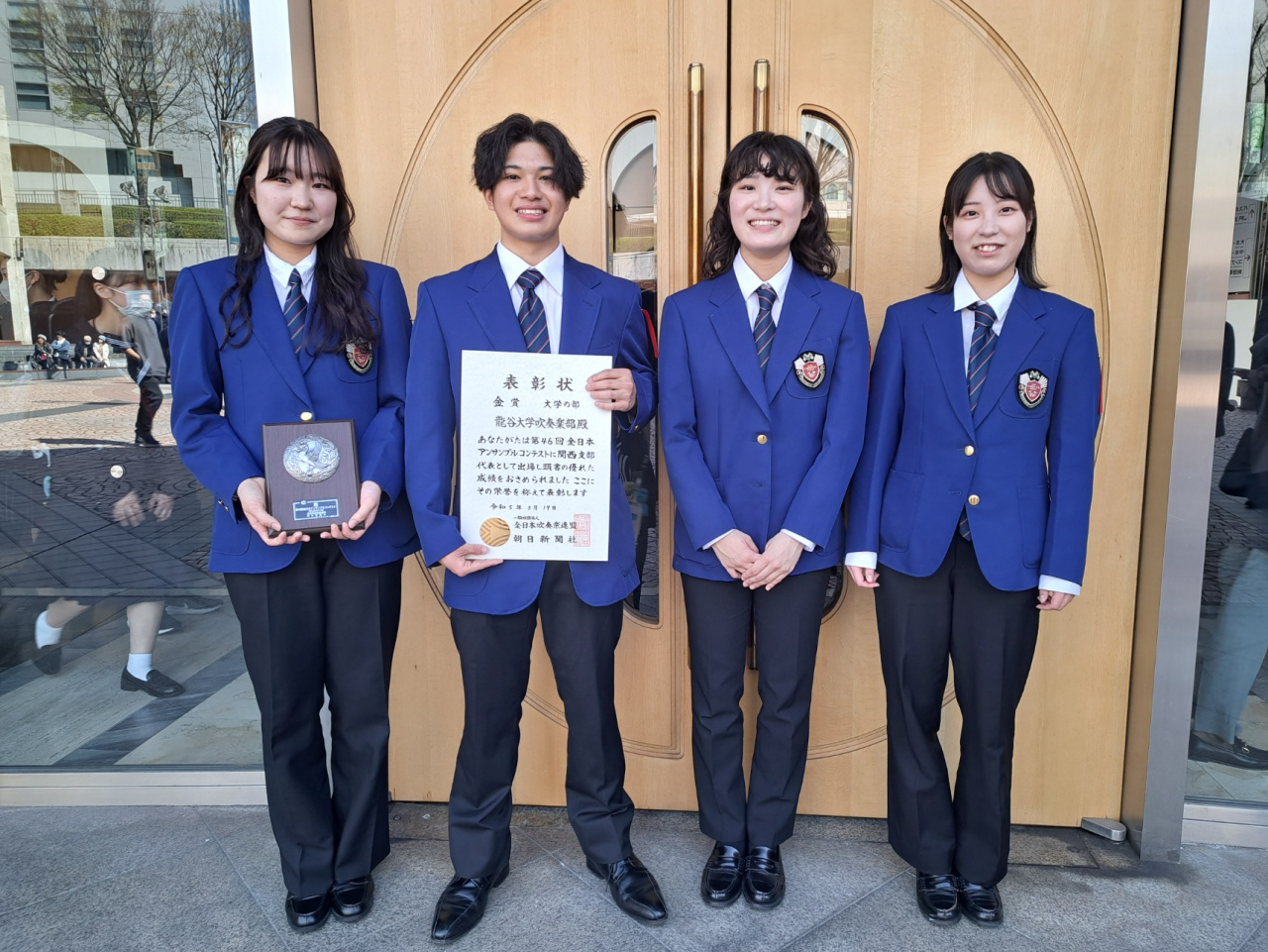 2023年3月19日(日)、アクトシティ浜松にて、第46回全日本アンサンブルコンテスト(全日本吹奏楽連盟、朝日新聞社主催)大学の部が開催され、吹奏楽部のクラリネット四重奏が1回生のみで構成されたメンバー4名で見事金賞を受賞しました。