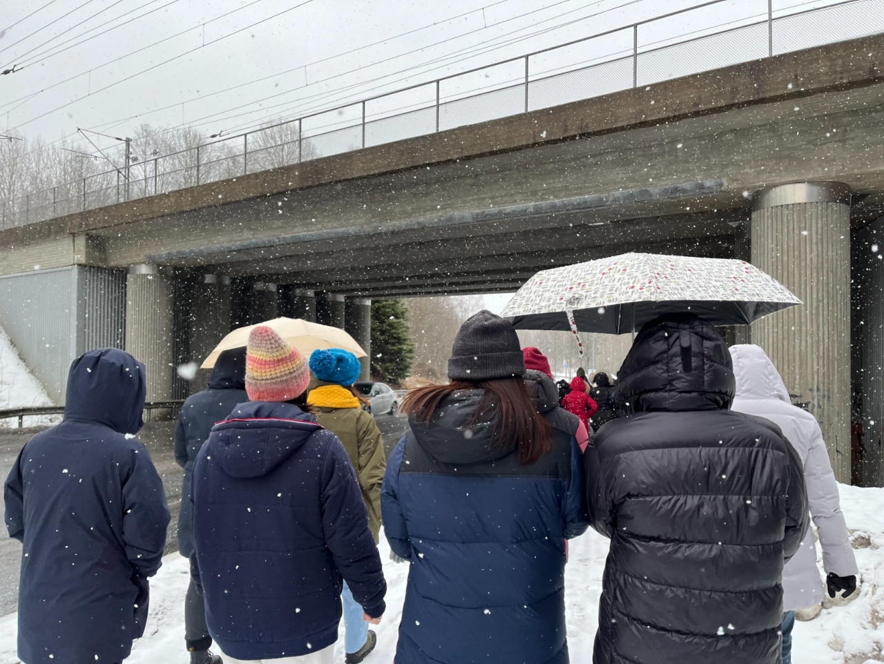 昨日はとても晴れていましたが、今日は一日中雪だったのでとても寒かったです。午前中は雨水管理や都市計画関する講義を受けました。午後からはフィールドワークとして、雨水管理の場所や公園を訪れました。毎日の講義やフィールドワークは難しい内容も含まれていますが、メモを取ったり復習をしたりして付いて行けるように頑張りたいです。