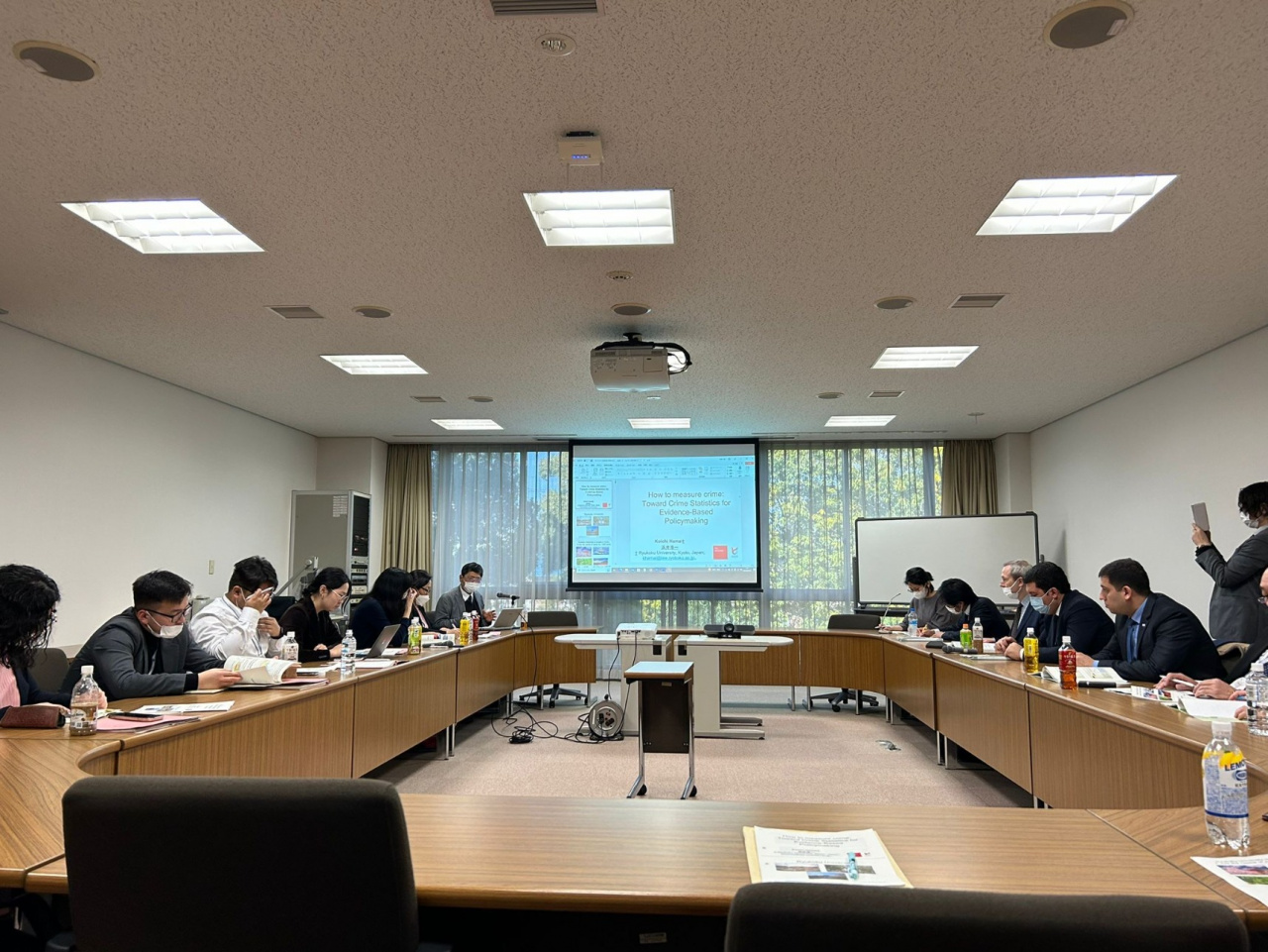 3月3日 法務省(法務総合研究所)が企画した「令和4年度刑事司法に関する統計共同研究」によりモンゴル国立法律研究所及びウズベキスタン共和国法執行アカデミーから派遣された研究員に対して、浜井浩一矯正・保護総合センター長が本学深草学舎至心館において刑事司法統計を活用したエビデンスに基づく刑事政策について英語による講義を行いました。研究員からは日本の犯罪の特徴などについて活発な質問があり、有意義な国際交流となりました。