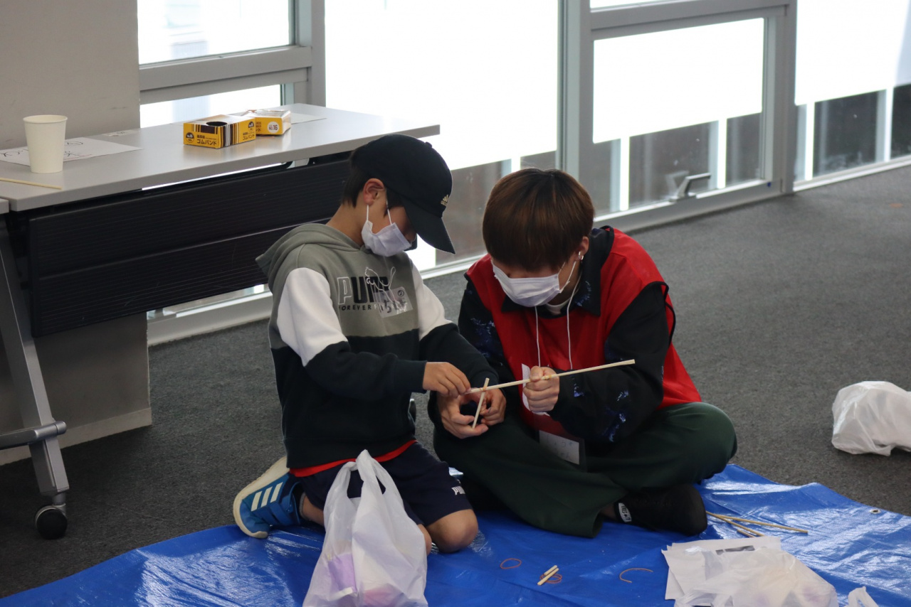 午前中はキャンパス内スタンプラリー班と教室での工作遊び班に分かれて遊びました!