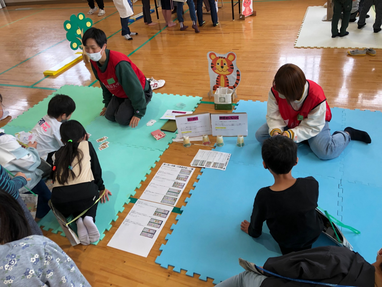 11月下旬に本イベント協力のお話があり、2月からSNS等でボランティア募集、3/25にイベント当日を迎えました。春休み中ということもあり、どれだけの学生が参加してくれるか不安でしたが、企画メンバー以外に9名の学生が参加してくれて、みんなでこのイベントを盛り上げることができてよかったですし、とても楽しかったです!小学生から高齢者の方まで幅広い世代の方と遊びを通してコミュニケーションする場は中々ないので、新鮮でした。また、龍大ブースとして設けたボッチャコーナーと手裏剣ストラックアウトコーナーは、子ども達が遊んでくれるか不安でしたが、たくさんの子ども達が来てくれて何回も遊んでくれたり、他の子と仲良くなっていたりしていてとても嬉しかったです。