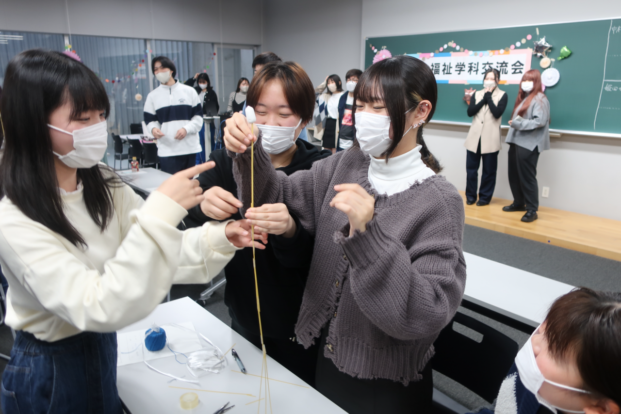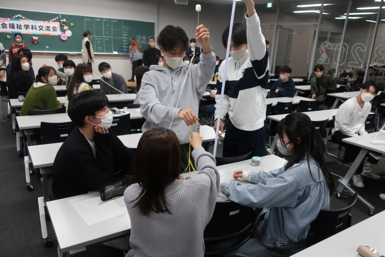 2023.04.13 【社会福祉学科】新入生が楽しく交流しながら仲間づくり 社会福祉学科では、「学生生活へのプロローグ」の両学科共通プログラムの実施後、「社会福祉学科交流会」を開催しました。 この交流会では、「じゃんけんビンゴゲーム」と「マシュマロタワー」という2つのゲームをとおして、新入生同士が、楽しみながら、交流を深めることができました。 2回生のサポートもあって大いに盛り上がり、たくさんの友達ができた新入生も多かったようです。 「じゃんけんビンゴゲーム」 「じゃんけんビンゴゲーム」 「マシュマロタワー」 「マシュマロタワー」 「マシュマロタワー」 「マシュマロタワー」