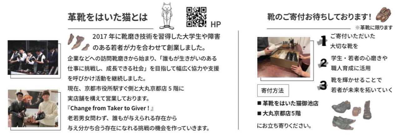 【大丸京都店開催】「回収されたモノが形を変えてまた誰かを笑顔に! 大丸京都店の “もったいないフェス”」に、「株式会社 革靴をはいた猫」(龍谷大学卒業生が在学時に起業)が参加します
