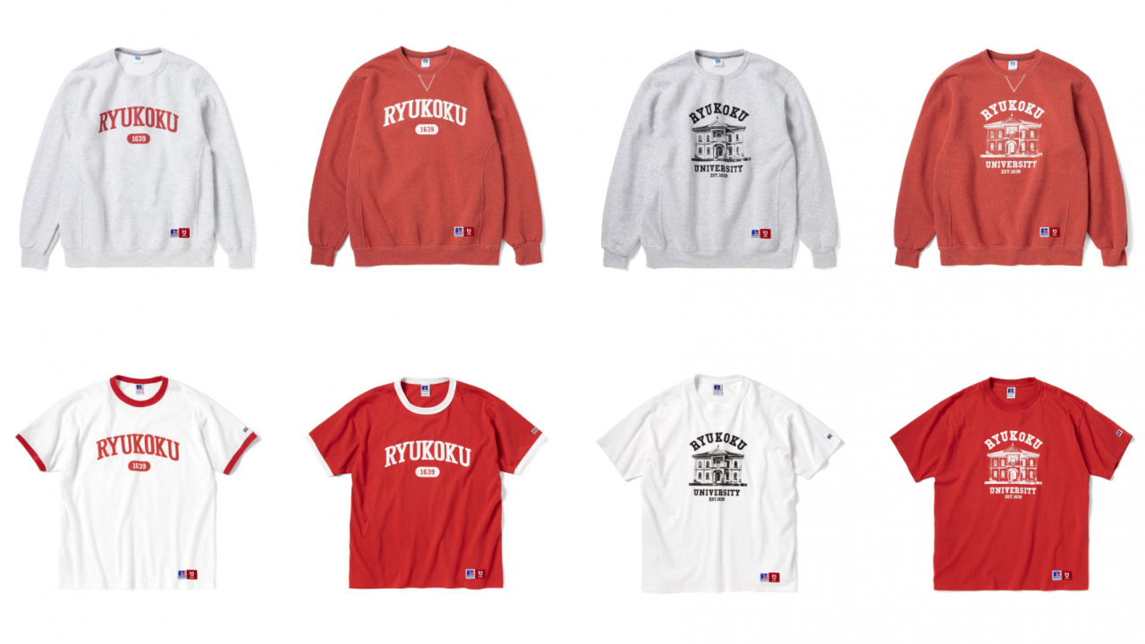スウェットとTシャツのボディには、実際にアメリカの大学のロゴスウェットを多数制作しているブランド「Russell Athletic」のボディを使用しています。※袖口には「Russell Athletic」と龍谷大学のロゴをタグとしてあしらいます。