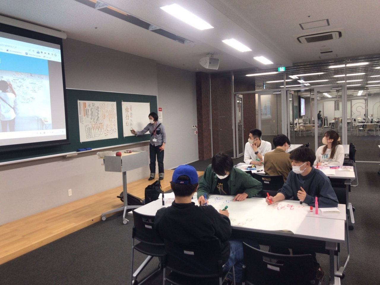 2023年5月11日(木)に外崎佑実さんを講師に迎え、グラフィックファシリテーション、グラフィックレコーディングの研修を行いました。今年度は対面で12名の学生が参加しました。