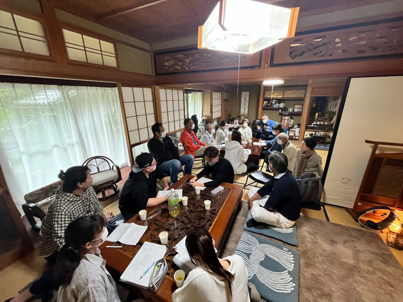 地域の有志の方と一緒に昼食のカレーライスをごちそうになった後、この2日間で学生が学んだことや感じたこと、疑問や質問などを共有、地域の方と意見交流しました。