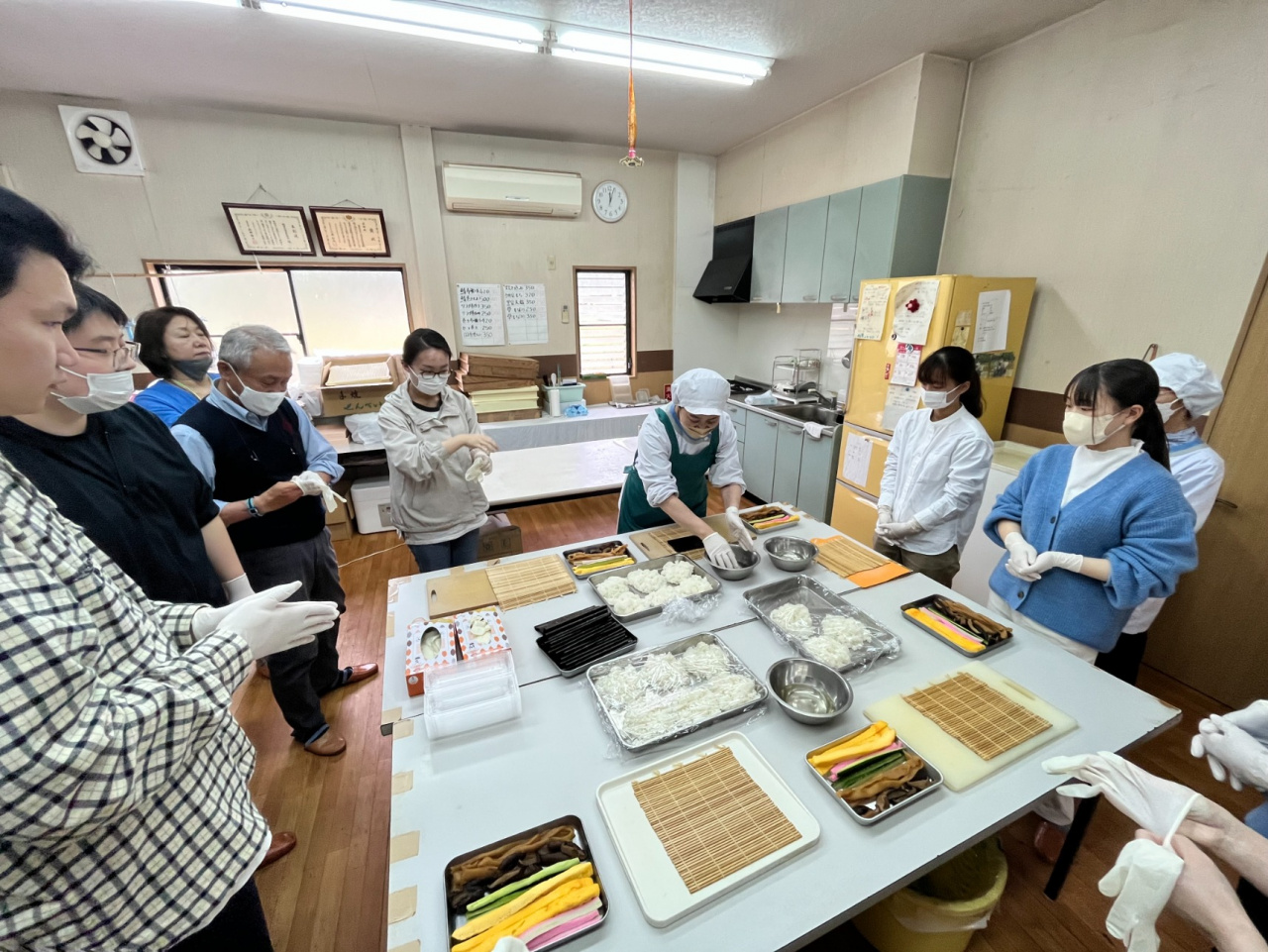 学生は南丹市日吉町郷土資料館で地域の歴史や文化について学んだ後、地域の農事組合法人で地元食材を使った巻きずしづくりを体験しました。