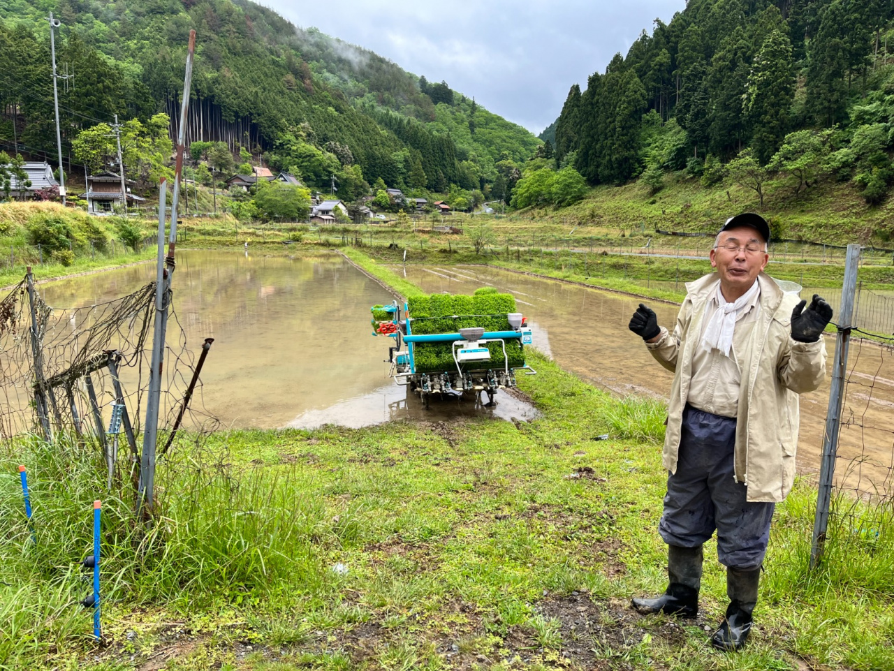 翌日は朝から田植え体験。田植え機を体験したり、補植したり、泥に足をとられながらがんばりました。