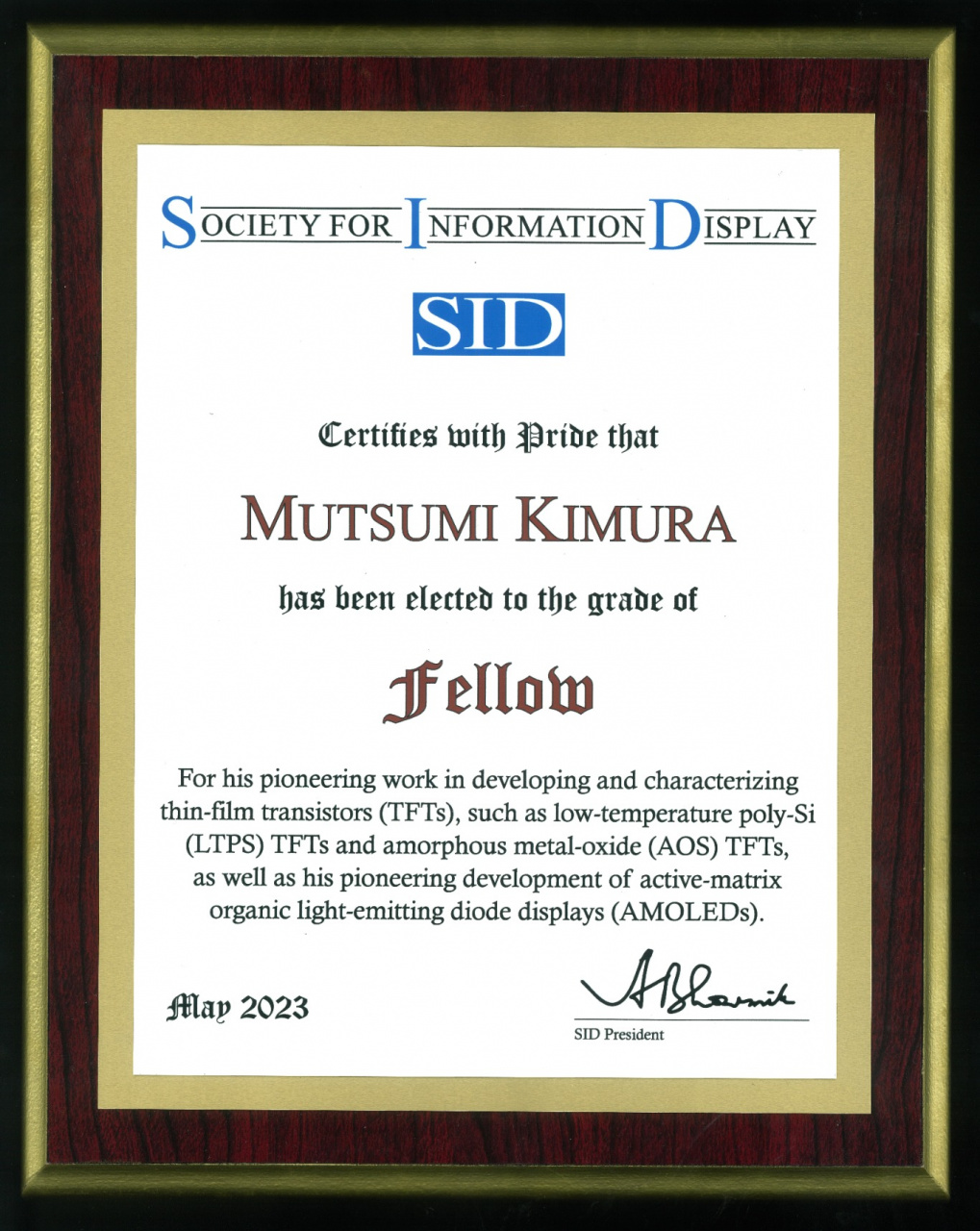 木村 睦 教授(電子情報通信課程)が、薄膜トランジスタと有機ELディスプレイについての研究が評価され「Society for Innovations in Display(SID)」のFellowを受賞しました。SIDは情報ディスプレイの世界最高権威の学会であり、Fellowは毎年数人のみが受賞するたいへん価値のあるものです。これらの研究は、スマートフォンや家庭用の液晶ディスプレイ、有機ELテレビなどに生かされています。