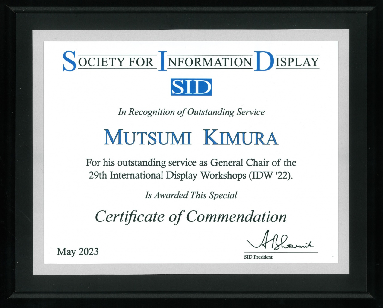 また、同時に国際会議「International Display Workshops(IDW)'22」の組織委員長としての貢献も評価され、ダブル受賞となりました。