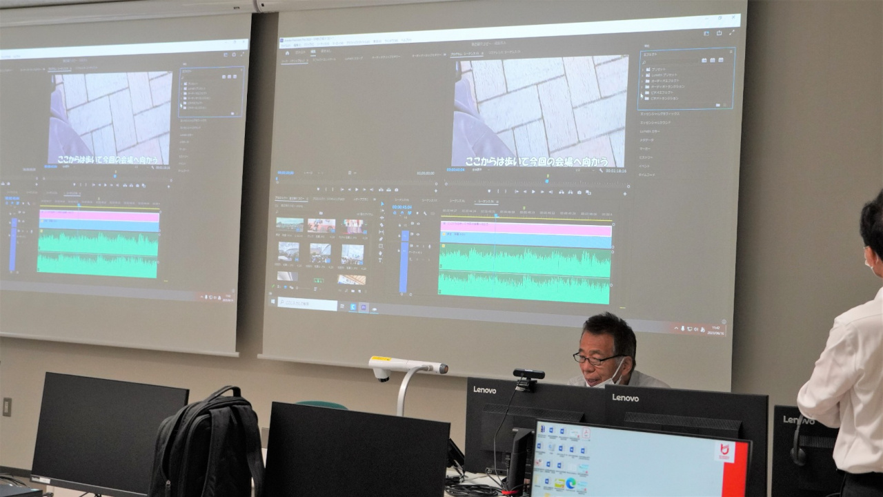 持ち寄った動画は全員で鑑賞し、どういった点が良かったか、どういう点を改善すると更に良い仕上がりになるかといった編集スキルについて、澤村譲さん(日本広報支援機構・動画制作担当)にご指導いただきました。